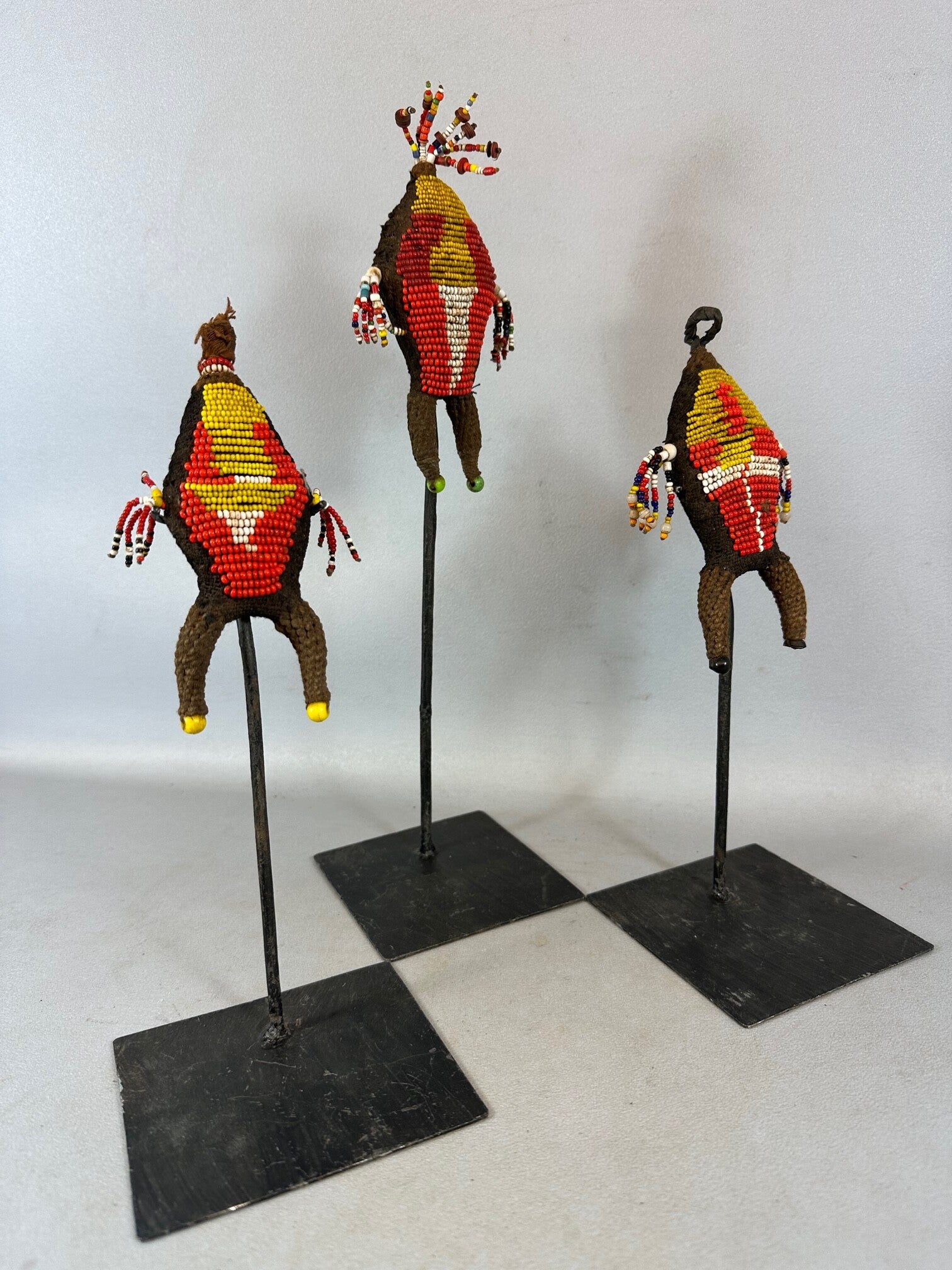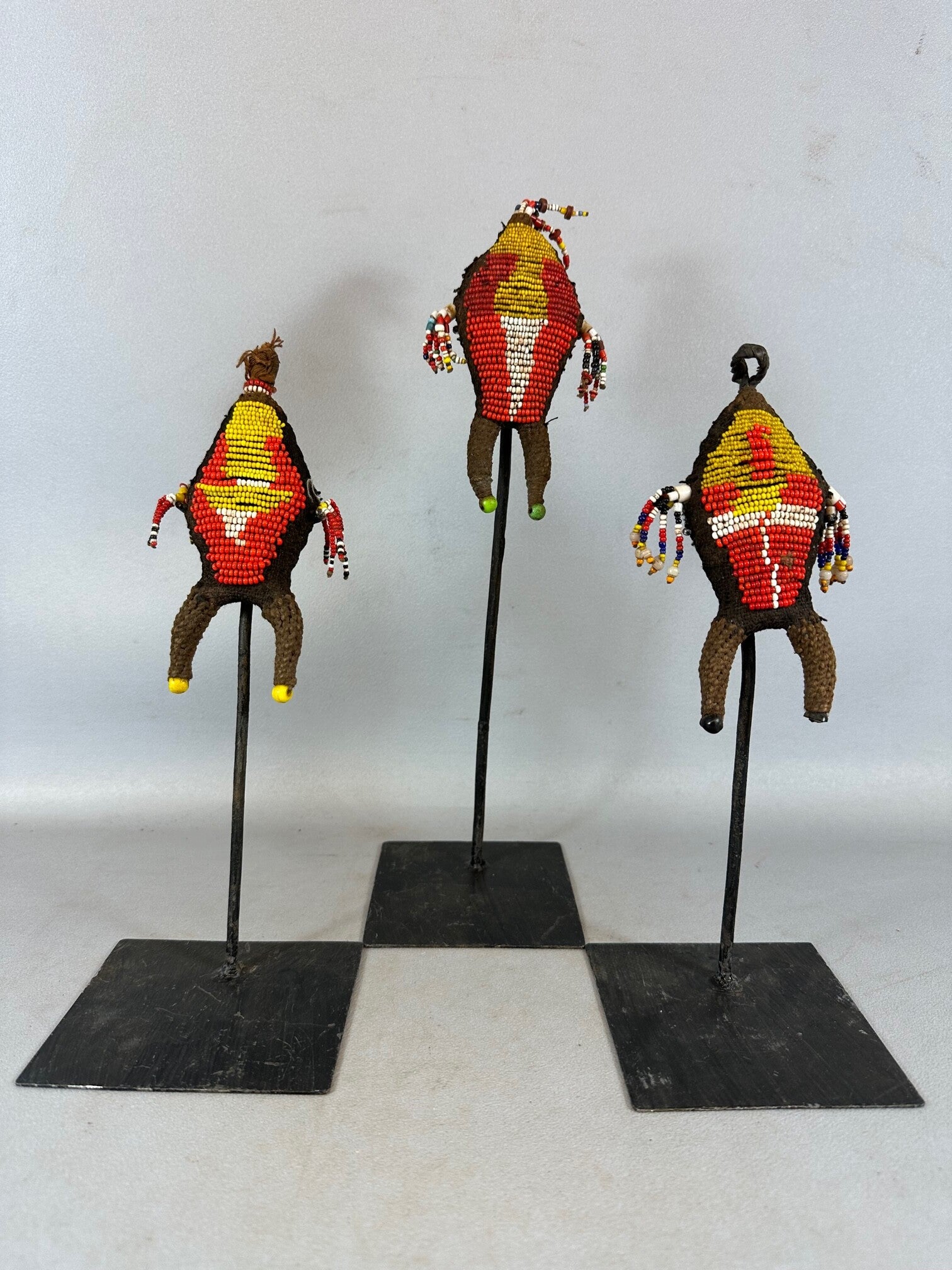230808 - Rare 3 Old Fali Ritual Ham Pilu Dolls on stand - Cameroon.