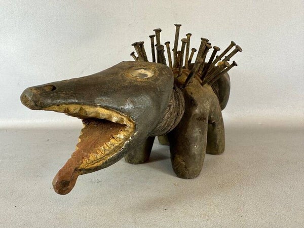African Bakongo Fetisch Nkondi Double head Dog statue from Congo.