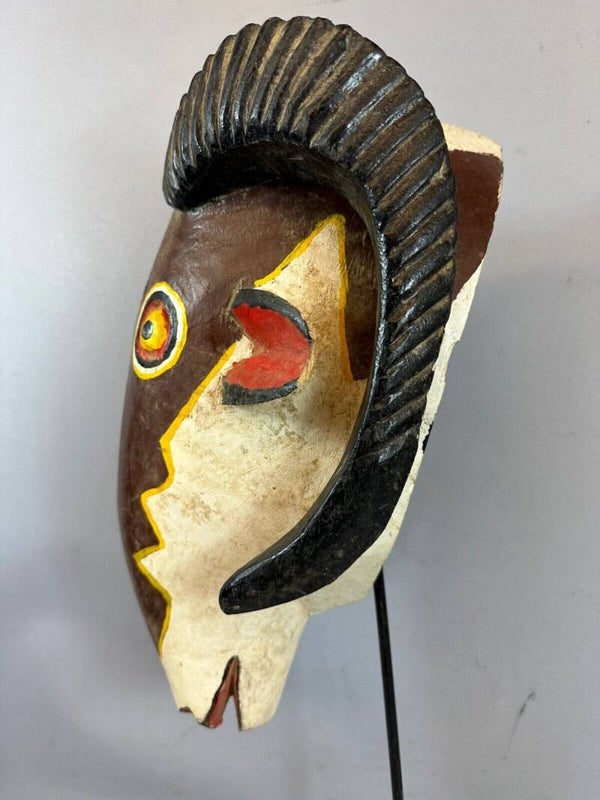 This is a fabulous Bozo mask that comes from Mali. Bozo Masks are used by the people of the Bozo tribe of Central Mali to tell the stories of their tribe. The young men’s association is responsible for the masquerades after the harvest is finished. A week of song and dance with these masks recounts the history of the group.