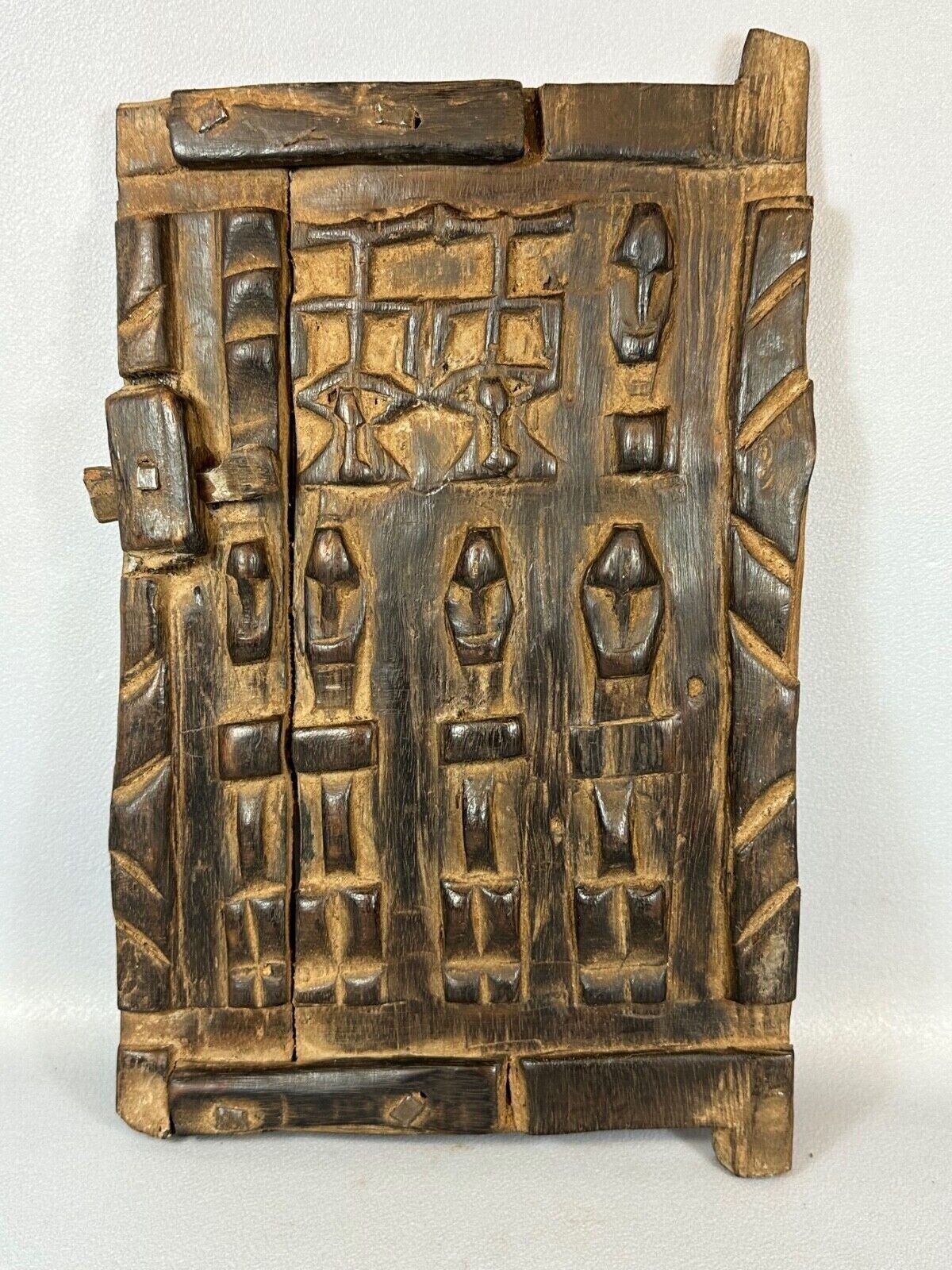 The Dogon are justifiably famous for their doors. Whether complex or plain, figurative or abstract, solid or weathered by the elements and use. Dogon doors are basically carved doorways and are a significant part of ancient West African life. The doors were initially designed to show social standing of the household. For the Agrarian societies of West Africa, granary doors are an especially important representation of wealth and prosperity of the farmer. Dogon people of Mali have created an art form in their granary doors. This amazing door would be fabulous in your home.