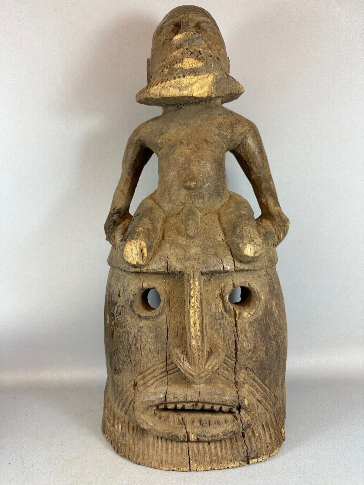 Dogon masks surmounted by animals- or female figures are called satimbe, commemorating a mythological woman who first discovered and wore a mask. According to myth, her husband stole this mask, and from that time on Dogon women have been prohibited from wearing or coming close in contact with masks. The satimbe also represents the Yasigne, or "sisters of the mask", women who are born during the sigi festival, held every sixty years to honor the apprearance of death among humans.