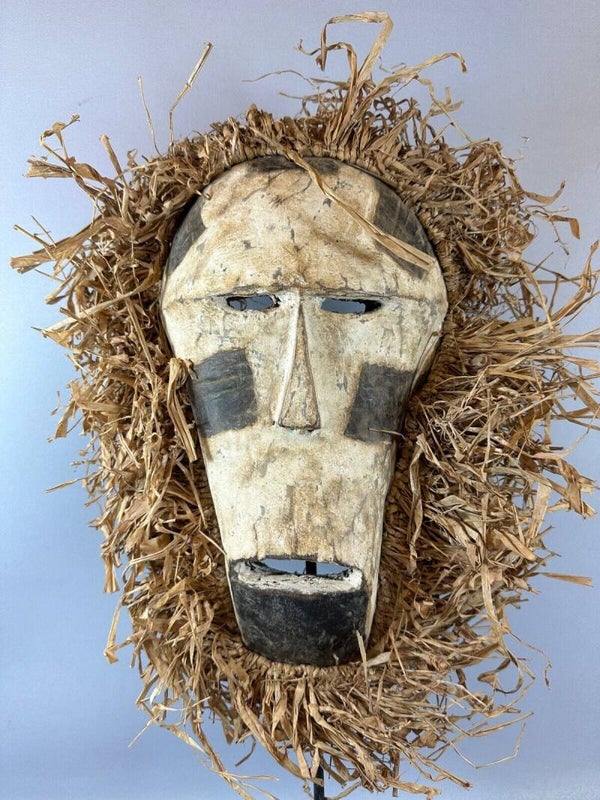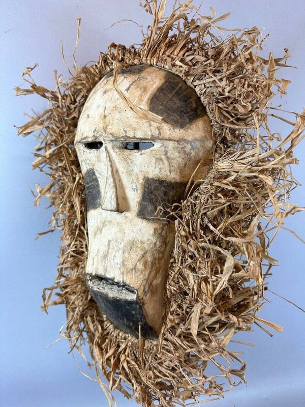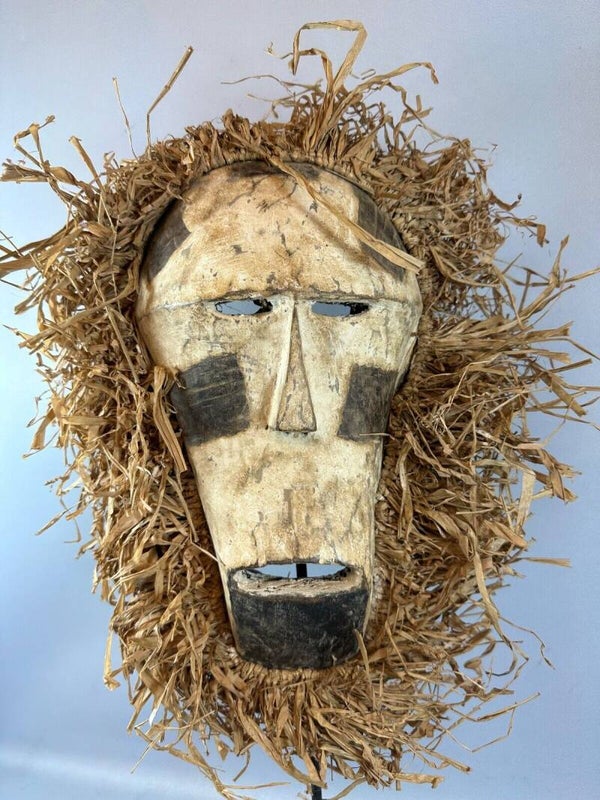 Old African Baali Ndaaka mask provincie Ituri - Congo.Hand carved from a single piece of wood, with color pigments and raffia.