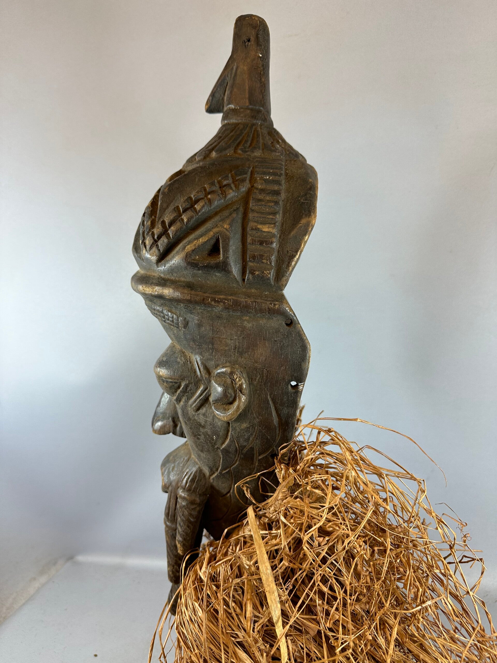 The Lulua numbering 300,000 inhabit a vast region in the province of West Kasai in the south central DRC. They live in small relatively independent regional chiefdoms. Lulua women grow manioc as a staple crop, as well as beans, sweet potatoes, maize, yams, peanuts, and bananas. The men are responsible for clearing the forest and preparing the soil for cultivation. They also hunt, fish with nets, and trap animals in the surrounding forests. The Lulua were never politically united and therefore there were a large number of relatively autonomous chiefs, which meant that many local dignitaries had works of art dedicated to them. The heterogeneous composition of the Lulua, and the considerable area they occupy, explain the many stylistic overlapping with their neighbors. Lulua art is very personal and has very little relation to neighboring styles, in particular the Kuba. The Lulua masks representing the spirits of the dead are used by masqueraders who perform during circumcision rites in initiation ceremonies.