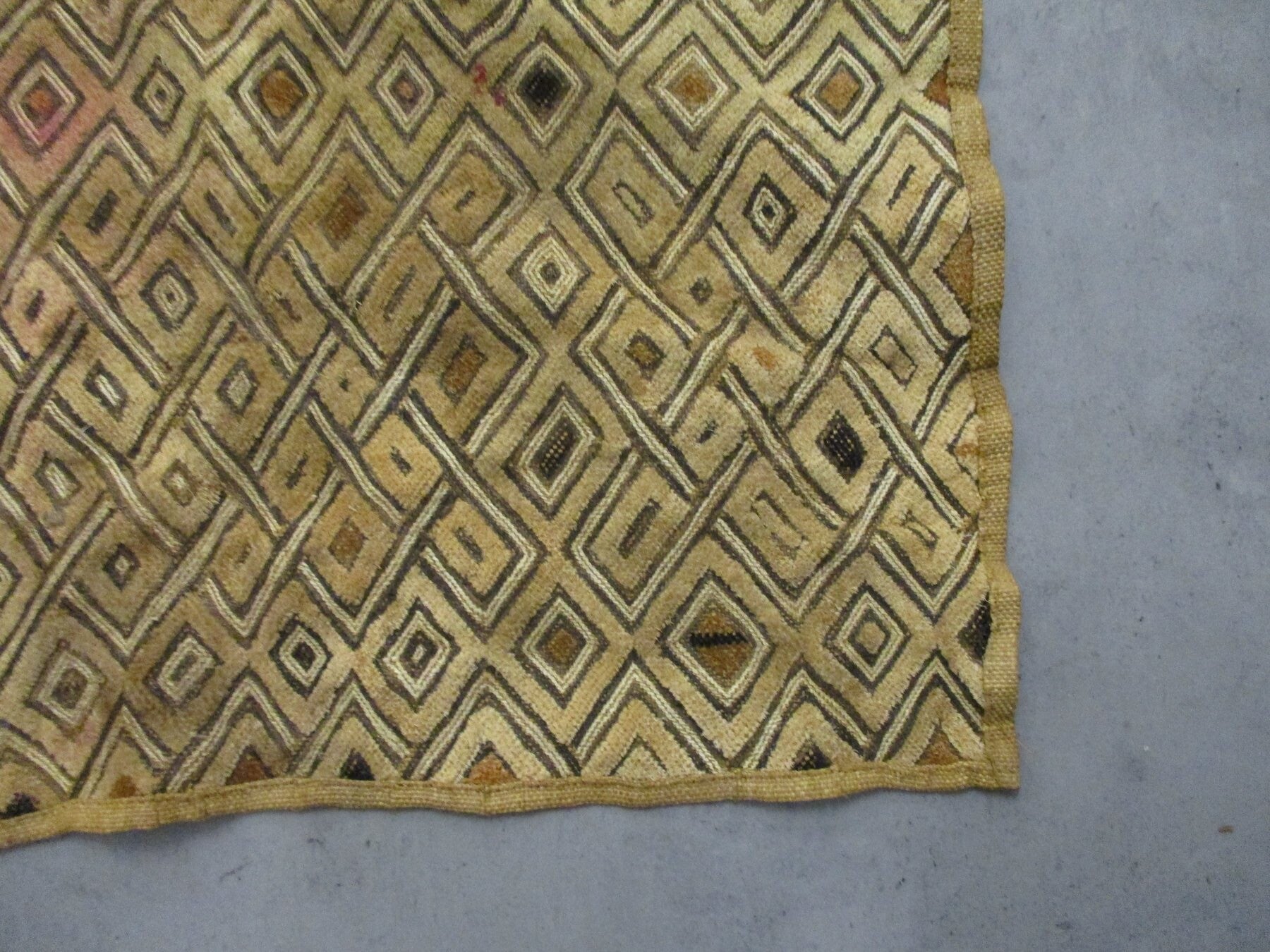 Old African Raffia fiber carpet from the Kuba people, Congo. Size 50 cm x 50 cm.Literature: Art Royal Kuba - Joseph Cornet .f.s.c.