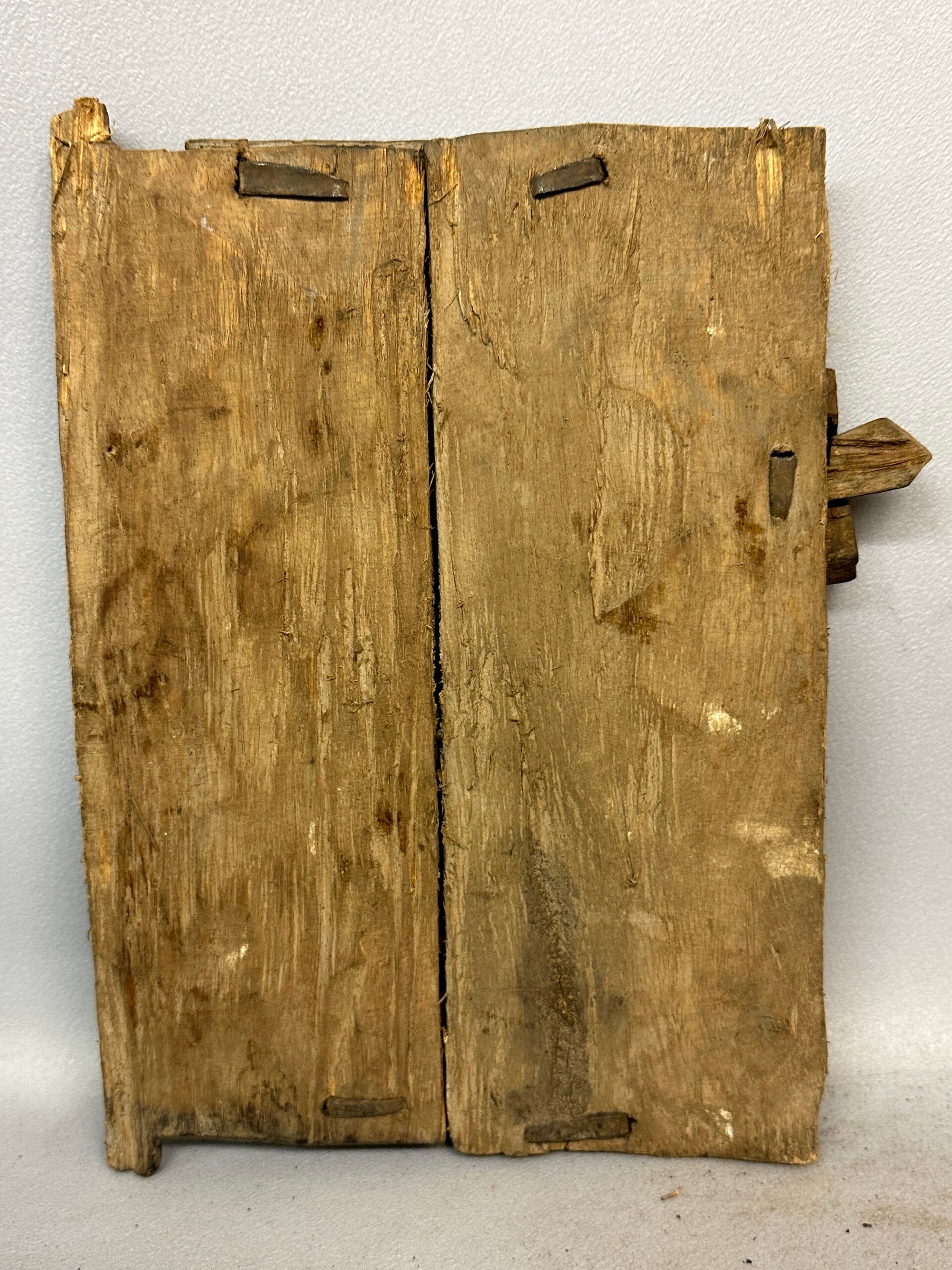 This beautifully carved African Granary door storage measures 26 cm tall and is hand-carved of wood. It originates from the Dogon tribe of of Mali and Burkina Faso. These doors protected the window like opening into each family’s grain storage building so a small amount of food could be taken out. Primordial beings, ancestors, Kanaga masks, sun lizards and scenes of life symbolically served to protect the entrance by making it sacrosanct. The low reliefs are carved on several panels, held together by iron staples.