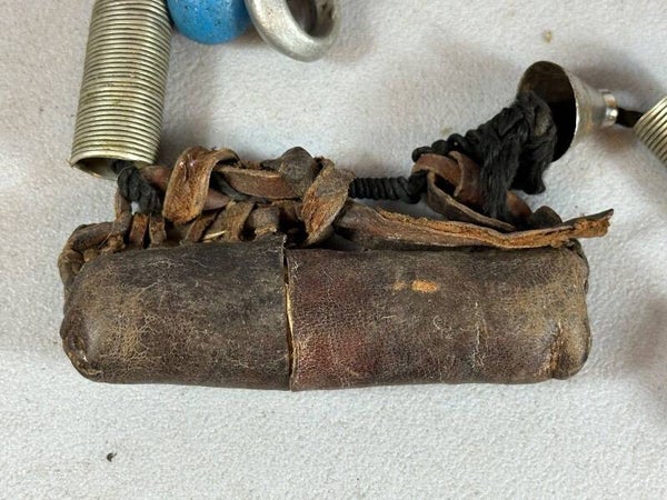 3 wedding rings, 3 silver pendants , 2 copper and glass rings, 1 x Bell Hanger snd 2 KITAB of leather with prayers for protection.