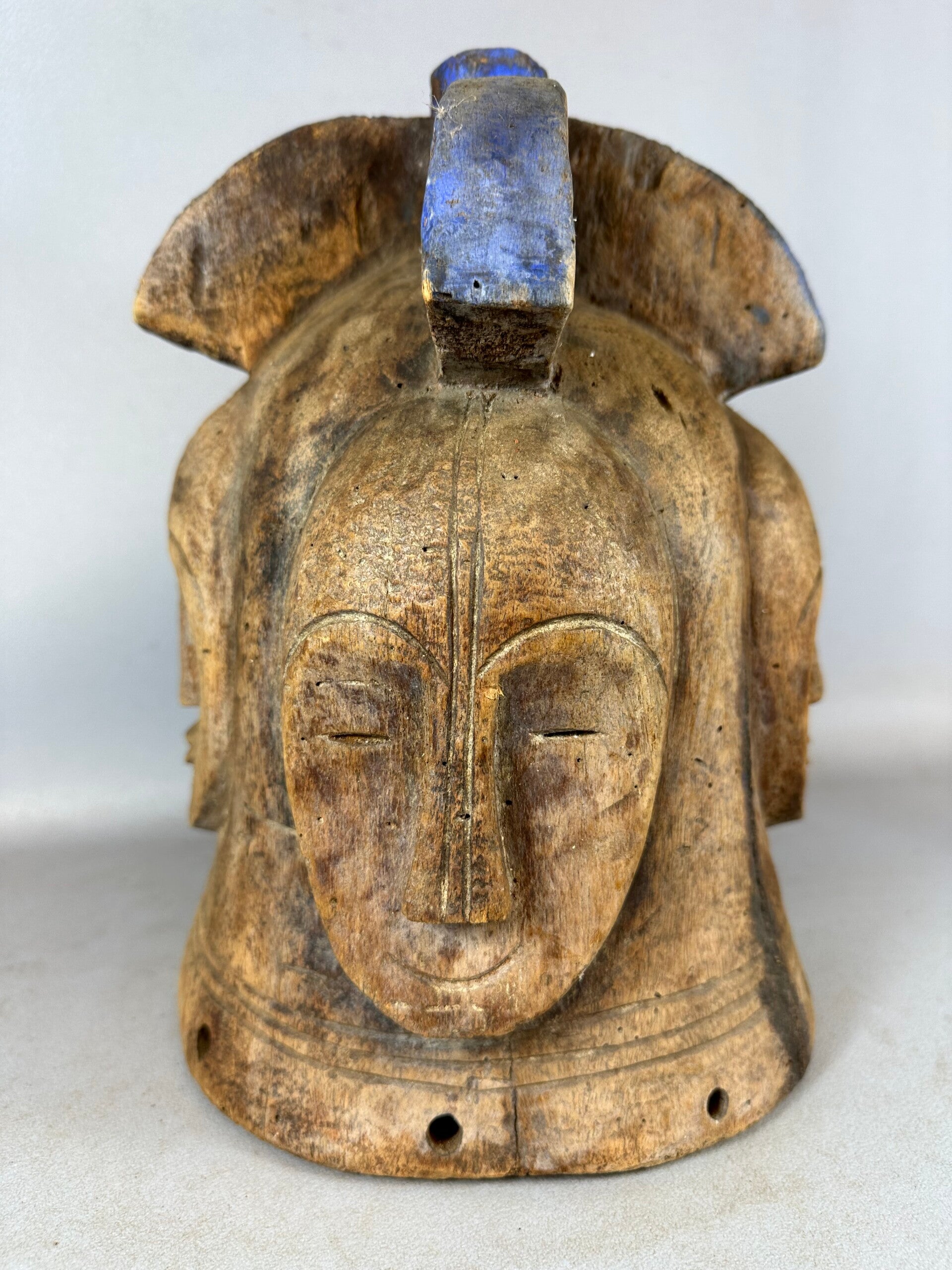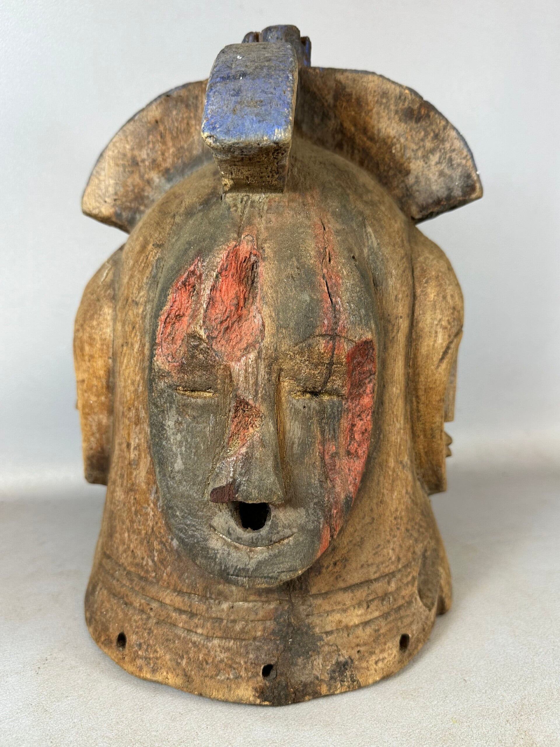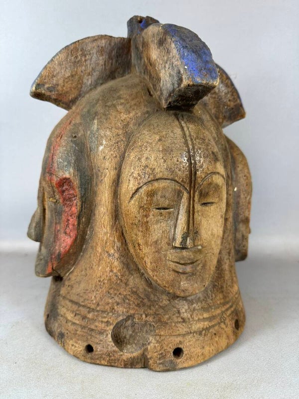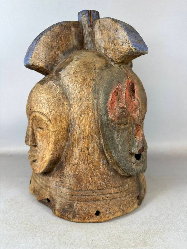 Old Tribal used Very expressive African Fang Ngontang Helmet Mask, Gabon.