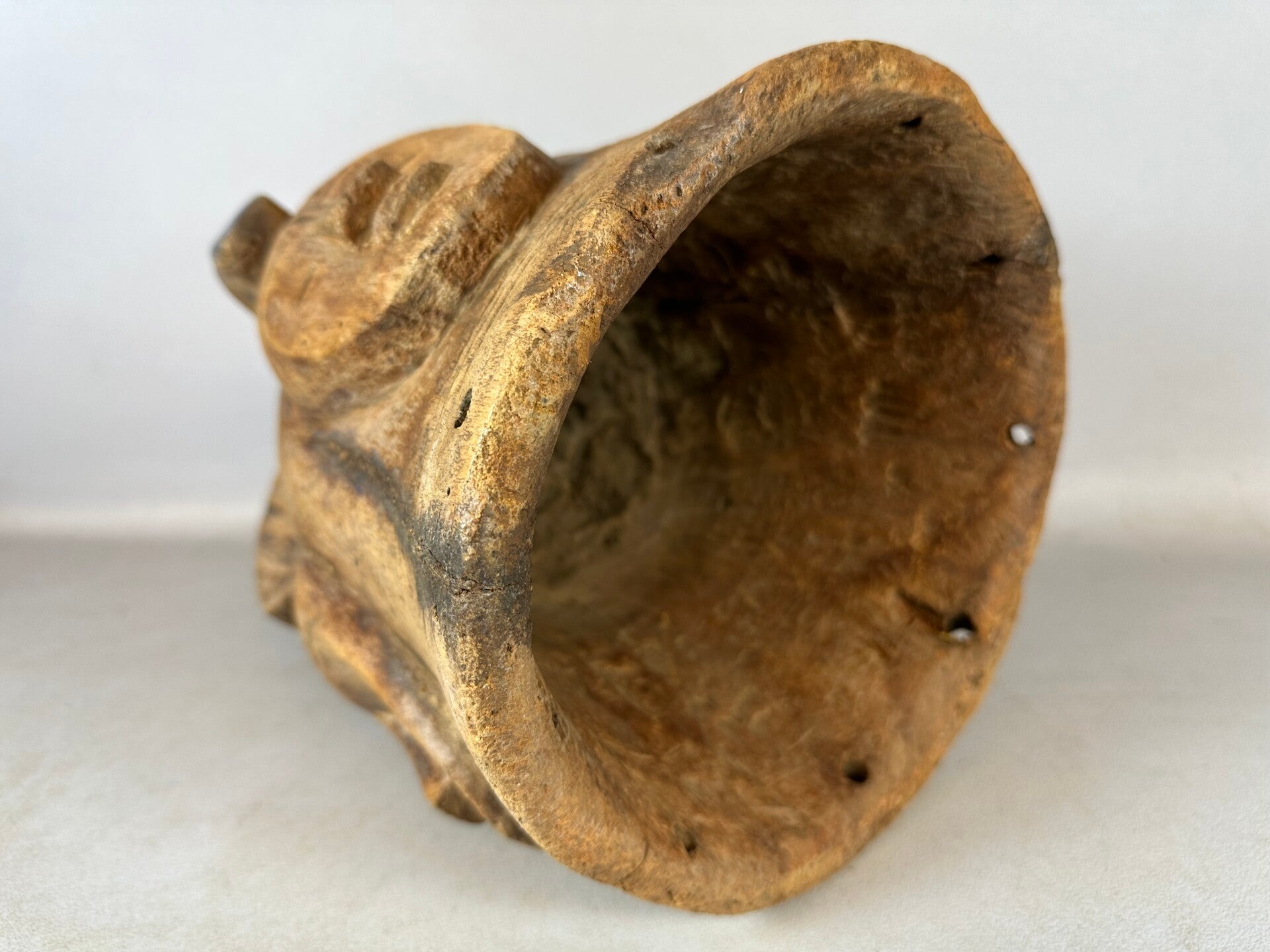 Hand carved from a single piece of wood.