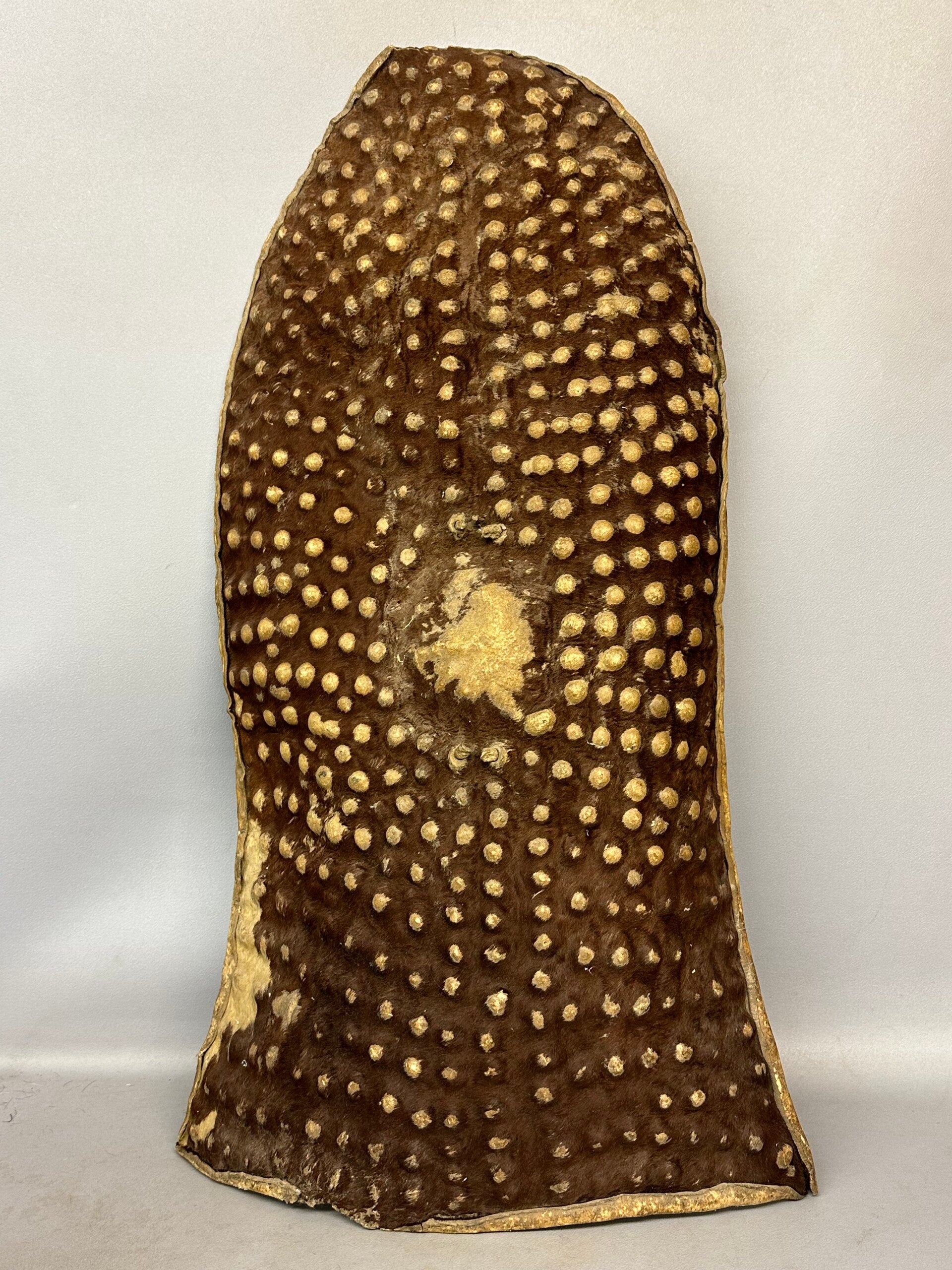 Dimensions: Length of the leather section of the shield is 82 cm and the width at the widest point is 44 cm.