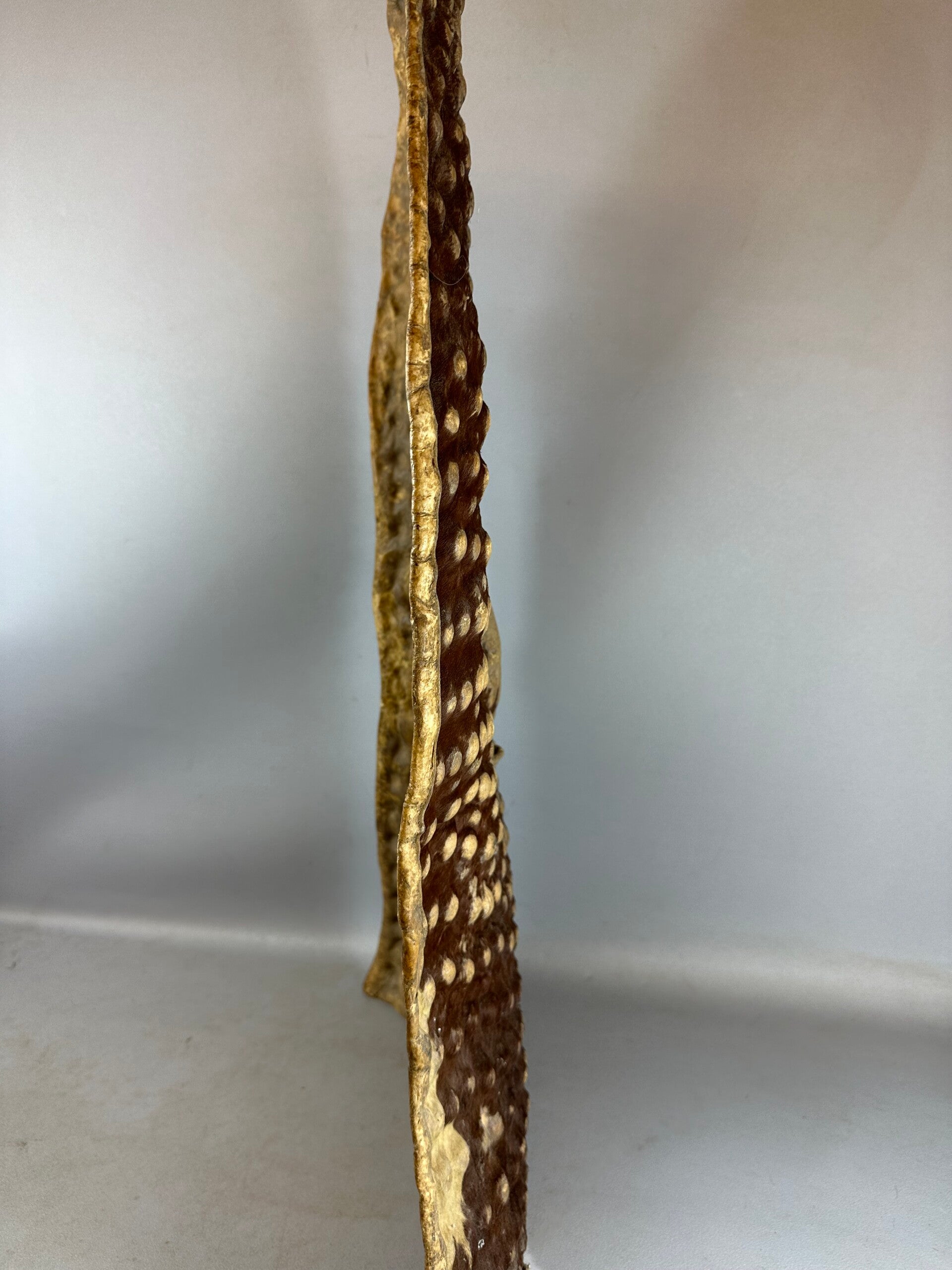 This Large Authentic Kirdi shield is covered with wild animal hide.