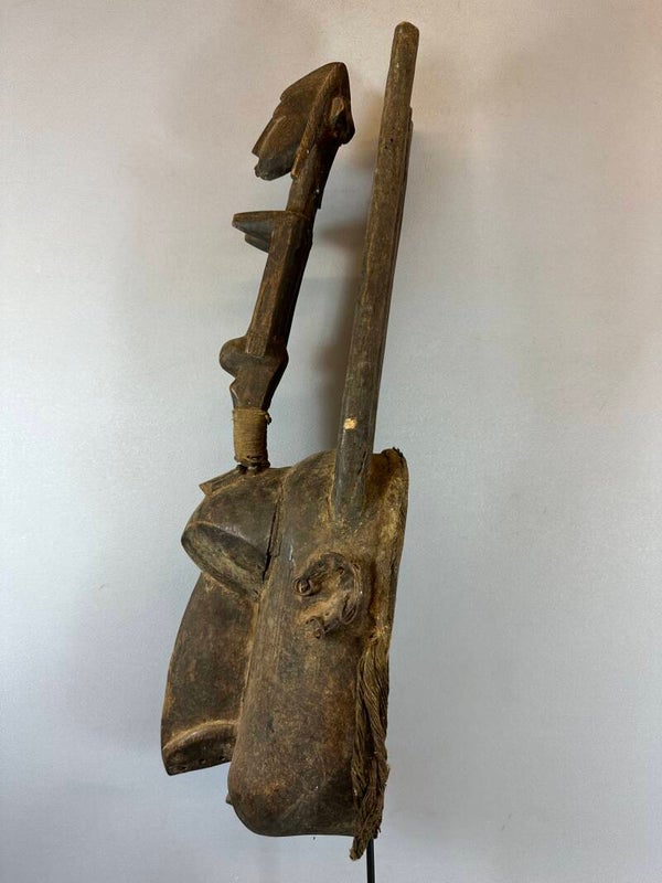 Old N' Tomo Bambara mask with sculpture on top from Mali.Hand carved from wood, carved decoration.