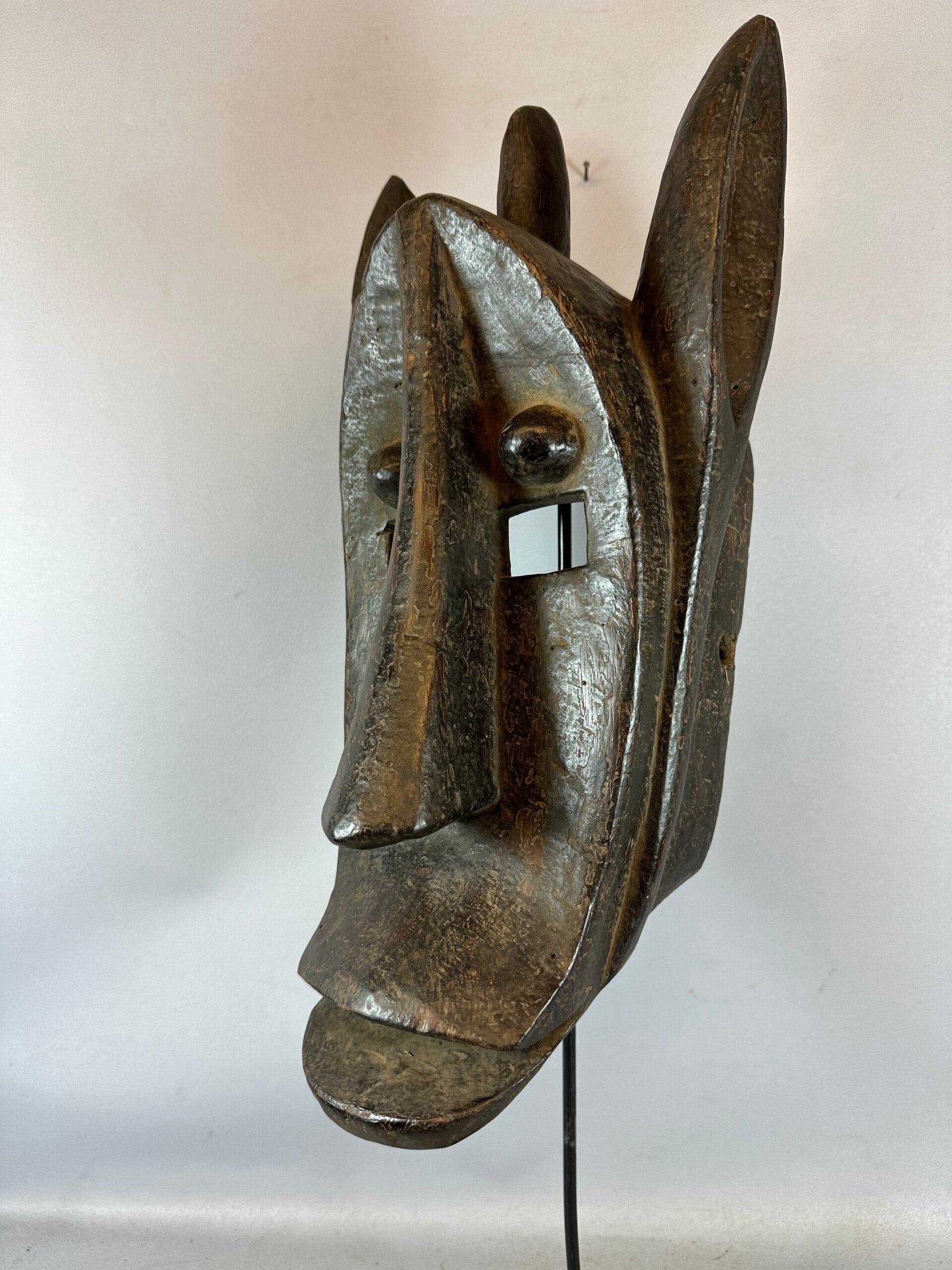 The Bambara numbering 2,500.000 million form the largest ethnic group within Mali. The triangle of the Bambara region, divided in two parts by the Niger River, constitutes the greater part of the western and southern Mali of today. The dry savanna permits no more than a subsistence economy, and the soil produces, with some difficulty, corn, millet, sorghum, rice, and beans. Their traditions include six male societies, each with its own type of mask. Initiation for men lasts for seven years and ends with their symbolic death and their rebirth. Nearly every Bambara man had to pass through these societies in succession, until, upon reaching the highest rank, he had acquired a comprehensive knowledge of ancestral traditions.