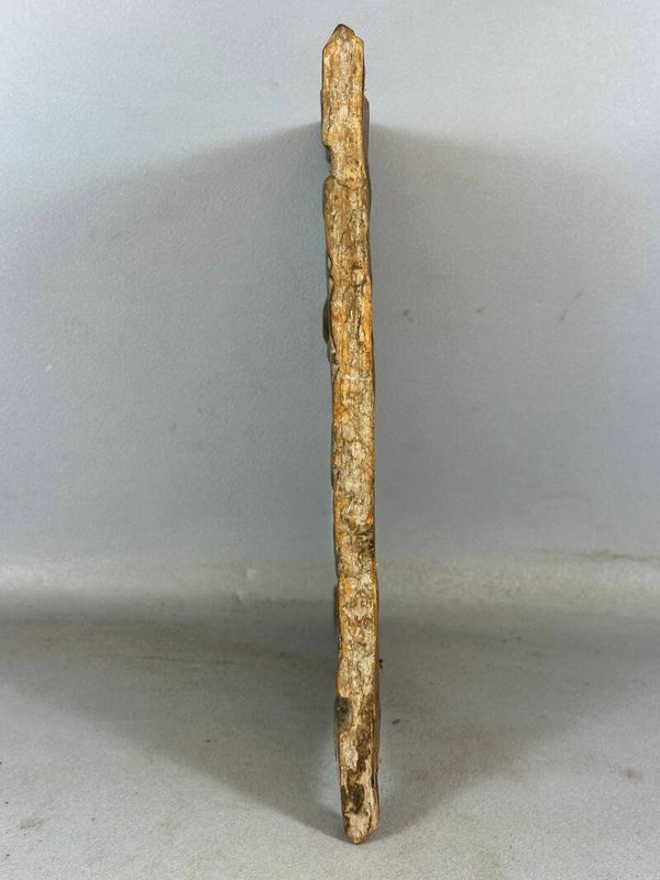 This beautifully carved African Granary door storage measures 28 cm tall and is hand-carved of wood. It originates from the Dogon tribe of of Mali and Burkina Faso. These doors protected the window like opening into each family’s grain storage building so a small amount of food could be taken out. Primordial beings, ancestors, Kanaga masks, sun lizards and scenes of life symbolically served to protect the entrance by making it sacrosanct. The low reliefs are carved on several panels, held together by iron staples.