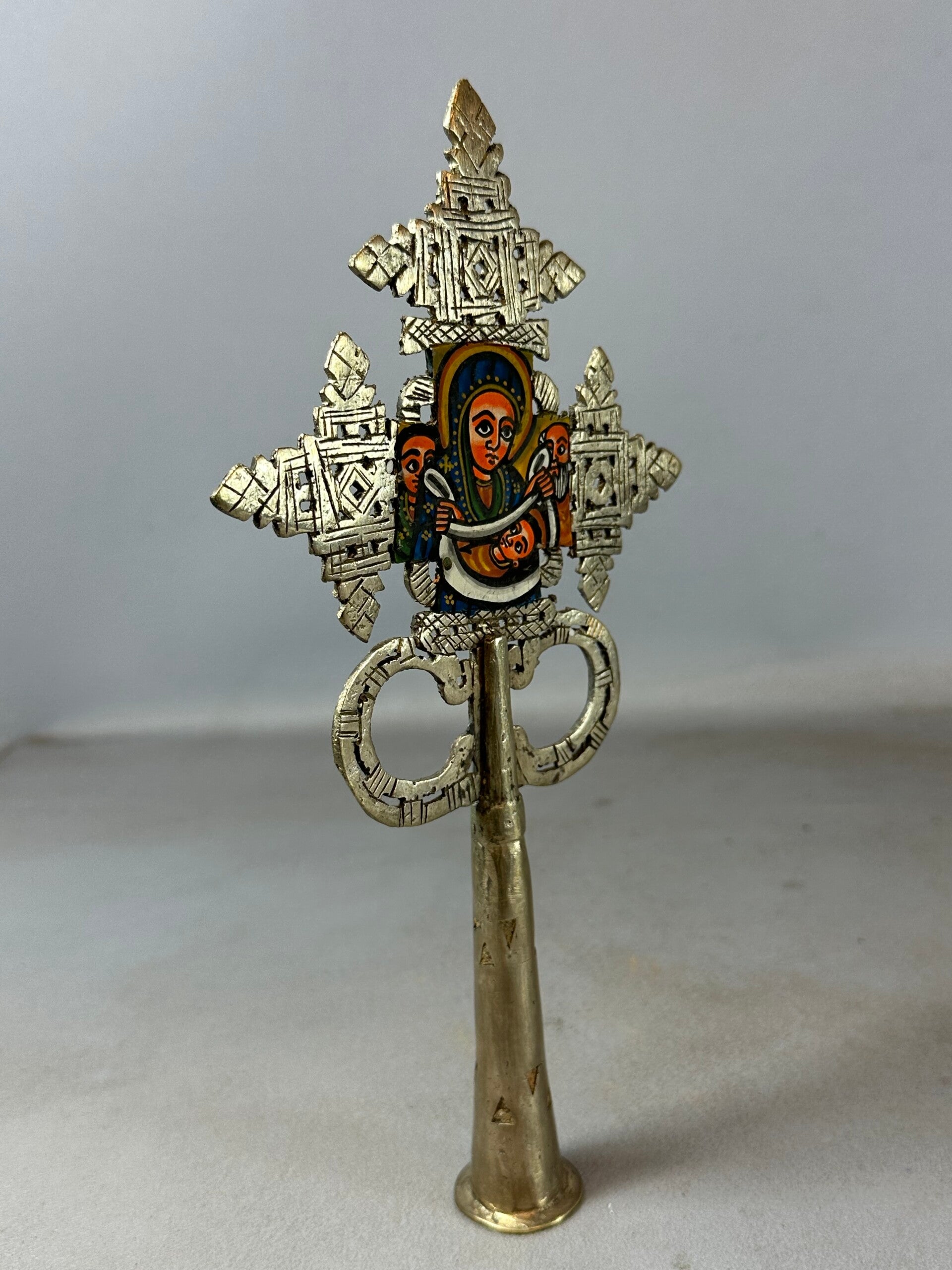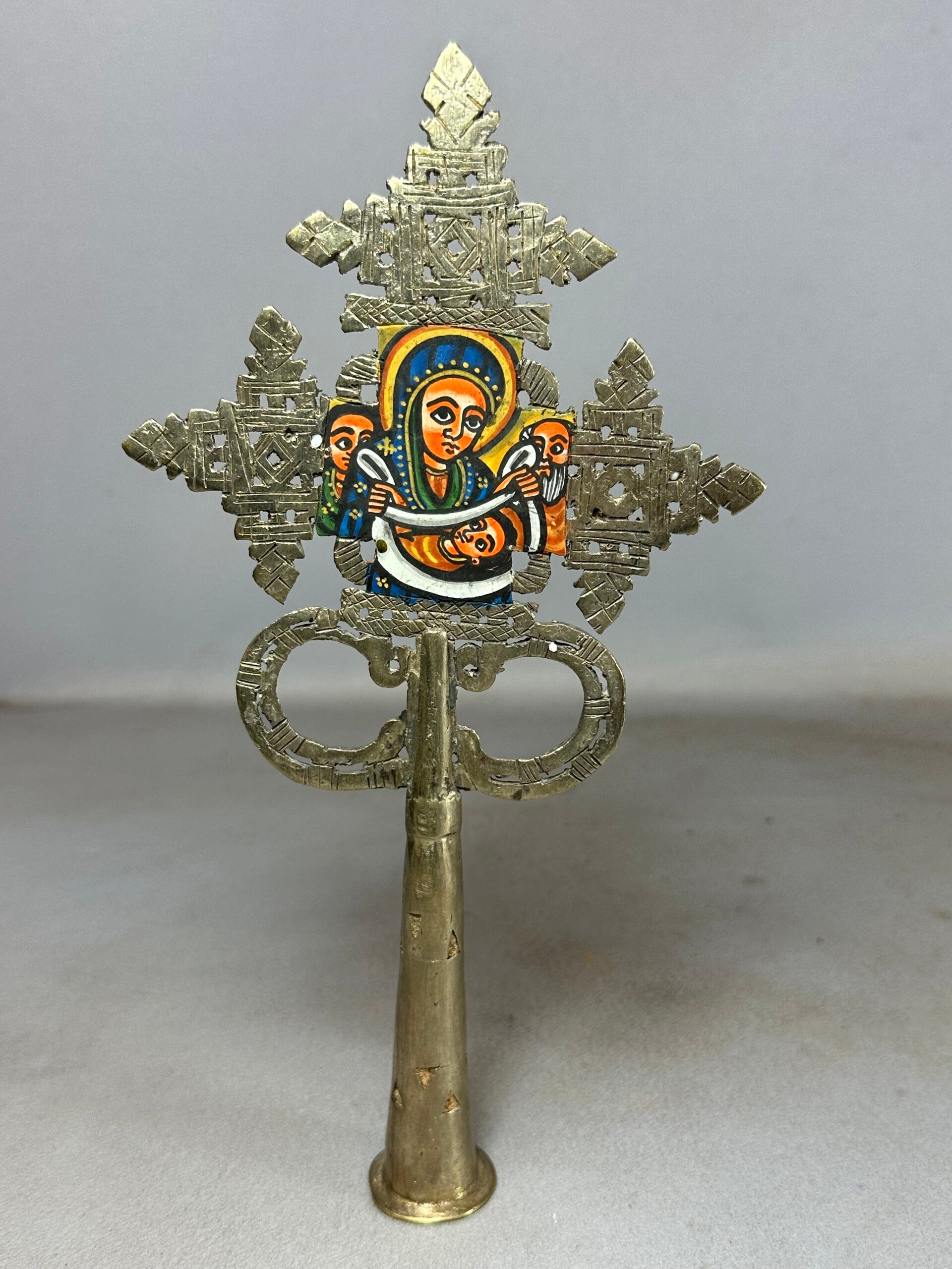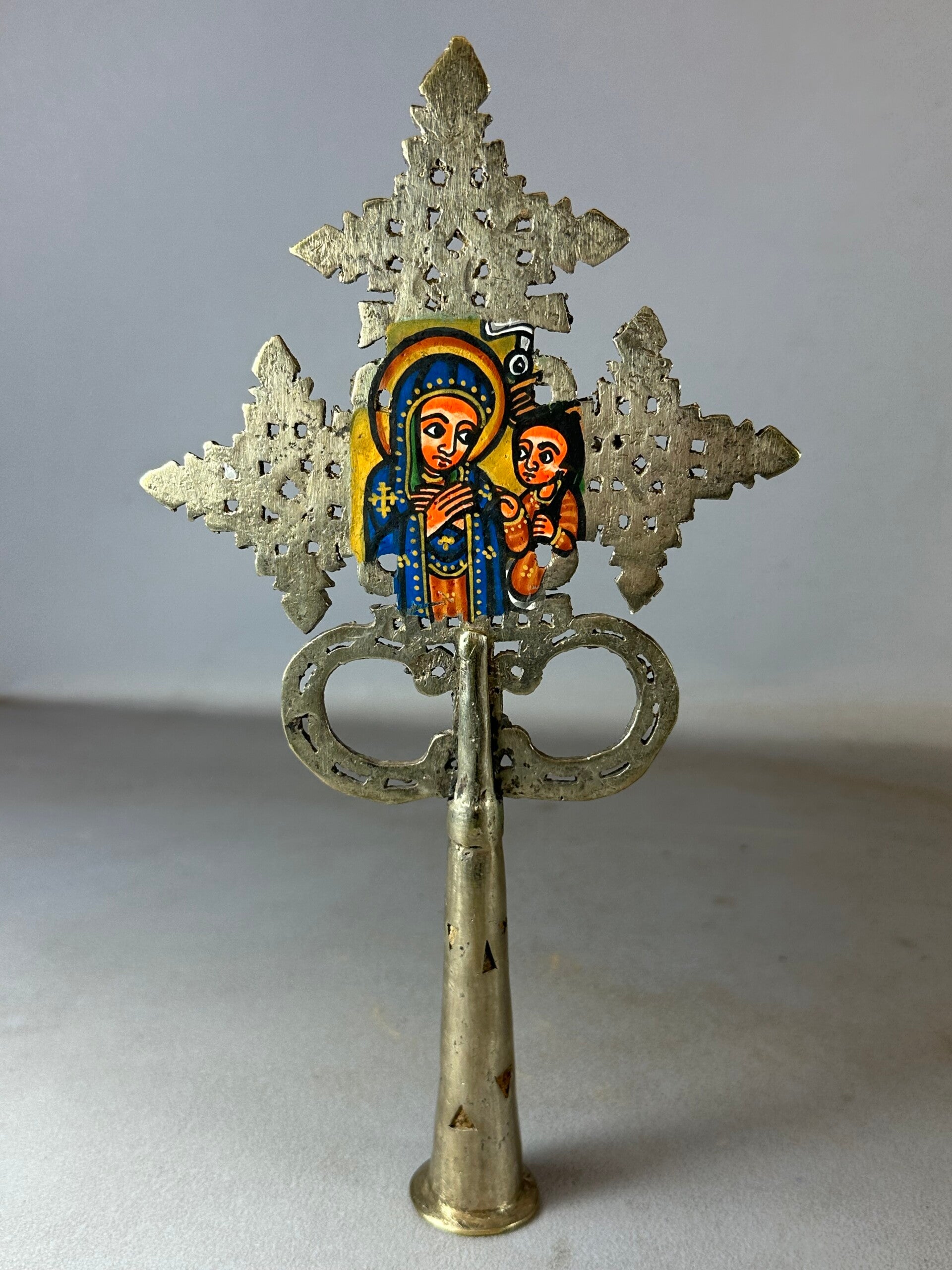 Ethiopia Coptic cross from the orthodox coptic Church with 2 handpainted icons.