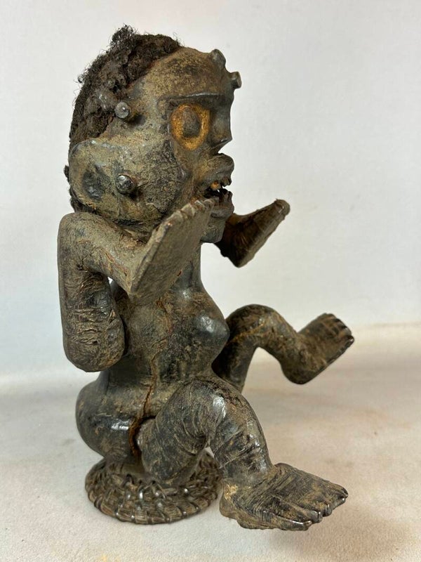 240722 - Old Ekoi Ngbe statue hide covered and real hair - Nigeria.