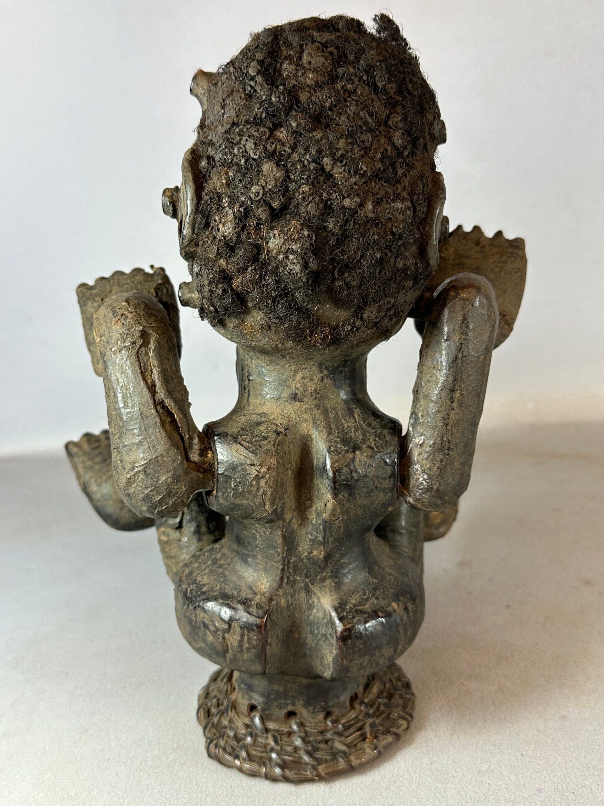 Old Ekoi Ngbe statue hide covered and real hair - Nigeria.Hand carved from wood and covered with Antelope hide.