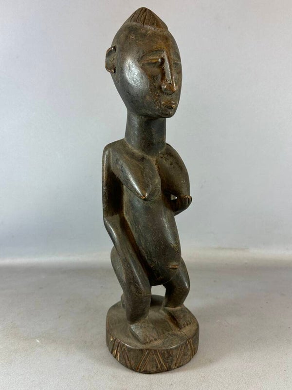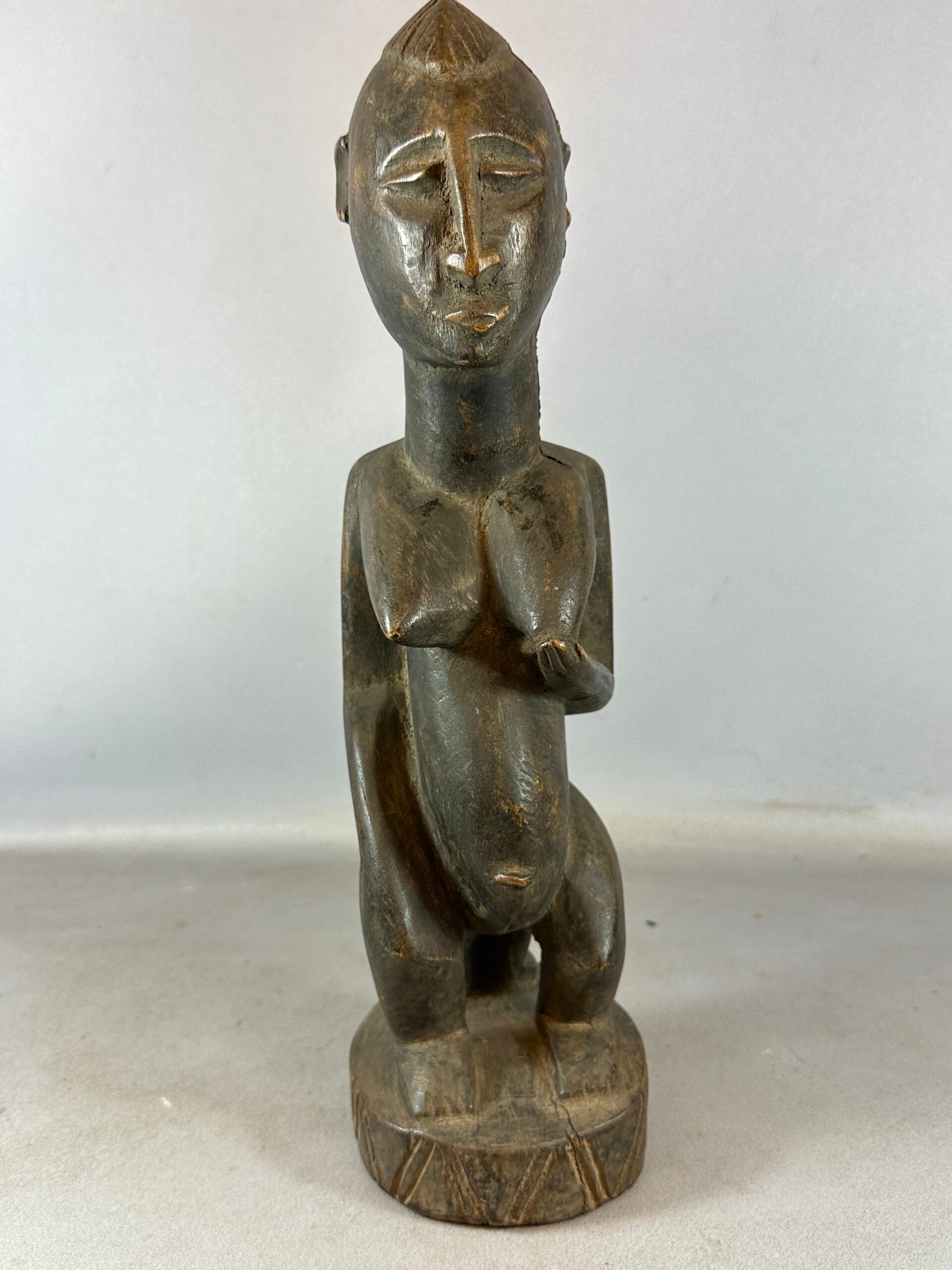 Dogon social and religious organizations are closely interlinked and out of this arose principal cults, which accounts for the richness and diversity of Dogon culture and art. The clans are subdivided onto lineages, overseen by the patriarch, guardian of the clan’s ancestral shrine and officiant at the totemic animal cult. Beside this hierarchical system of consanguinity, male and female associations are entrusted with the initiations that take place by age group, corresponding to groups of newly circumcised or excised boys or girls. The Dogon believe these operations remove the female element from males and vice versa. Circumcision thus creates a wholly male or female person prepared to assume an adult role. The members of an age group owe one another assistance until the day they die. Initiation of boys begins after their circumcision, with the teaching of the myths annotated by drawings and paintings. The young boys will learn the place of humans in nature, society, and the universe. In the Dogon pantheon Amma appears as the original creator of all the forces of the universe and of his descendant Lebe, the god of plant rebirth. Thefirst Dogon primordial ancestors, called Nommo, were bisexual water gods. They were created in heaven by the creator god Amma and descended from heaven to earth in an ark. The Nommo founded the eight Dogon lineages and introduced weaving, smithing, and agriculture to their human descendants.Dogon art is extremely versatile, although common stylistic characteristics – such as a tendency towards stylization – are apparent on the statues. Their art deals with the myths whose complex ensemble regulates the life of the individual. The sculptures are preserved in innumerable sites of worship, personal or family altars, altars for rain, altars to protect hunters, in market. As a general characterization of Dogon statues, one could say that they render the human body in a simplified way, reducing it to its essentials. Some are extremely elongated with emphasis on geometric forms. The subjective impression is one of immobility with a mysterious sense of a solemn gravity and serene majesty, although conveying at the same time a latent movement. Dogon sculpture recreates the hermaphroditic silhouettes of the Tellem, featuring raised arms and a thick patina made of blood and millet beer. The four Nommo couples, the mythical ancestors born of the god Amma, ornament stools, pillars or men’s meeting houses, door locks, and granary doors. The primordial couple is represented sitting on a stool, the base of which depicts the earth while the upper surface represents the sky; the two are interconnected by the Nommo. The seated female figures, their hands on their abdomen, are linked to the fertility cult, incarnating the first ancestor who died in childbirth, and are the object of offerings of food and sacrifices by women who are expecting a child. Kneeling statues of protective spirits are placed at the head of the dead to absorb their spiritual strength and to be their intermediaries with the world of the dead, into which they accompany the deceased before once again being placed on the shrines of the ancestors. Horsemen are remainders of the fact that, according to myth, the horse was the first animal present on earth. The Dogon style has evolved into a kind of cubism: ovoid head, squared shoulders, tapered extremities, pointed breasts, forearms, and thighs on a parallel plane, hairdos stylized by three or four incised lines. Dogon sculptures serve as a physical medium in initiations and as an explanation of the world. They serve to transmit an understanding to the initiated, who will decipher the statue according to the level of their knowledge. Carved animal figures, such as dogs and ostriches, are placed on village foundation altars to commemorate sacrificed animals, while granary doors, stools and house posts are also adorned with figures and symbols.