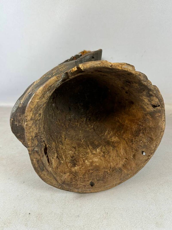 240805 - Rare African Makonde helm mask with feathers - Tanzania.