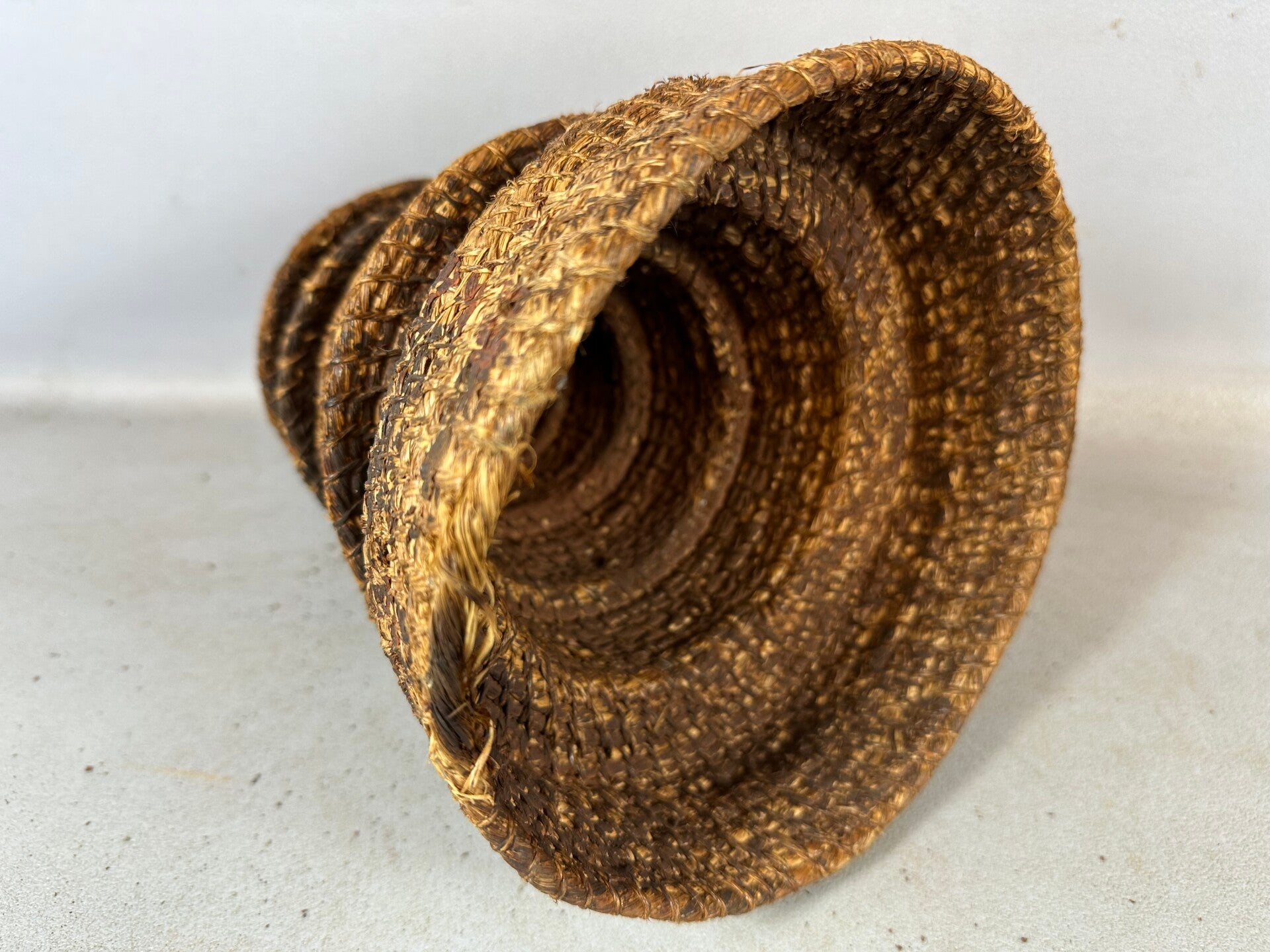 Hand woven and molded from raffia, with natural pigments