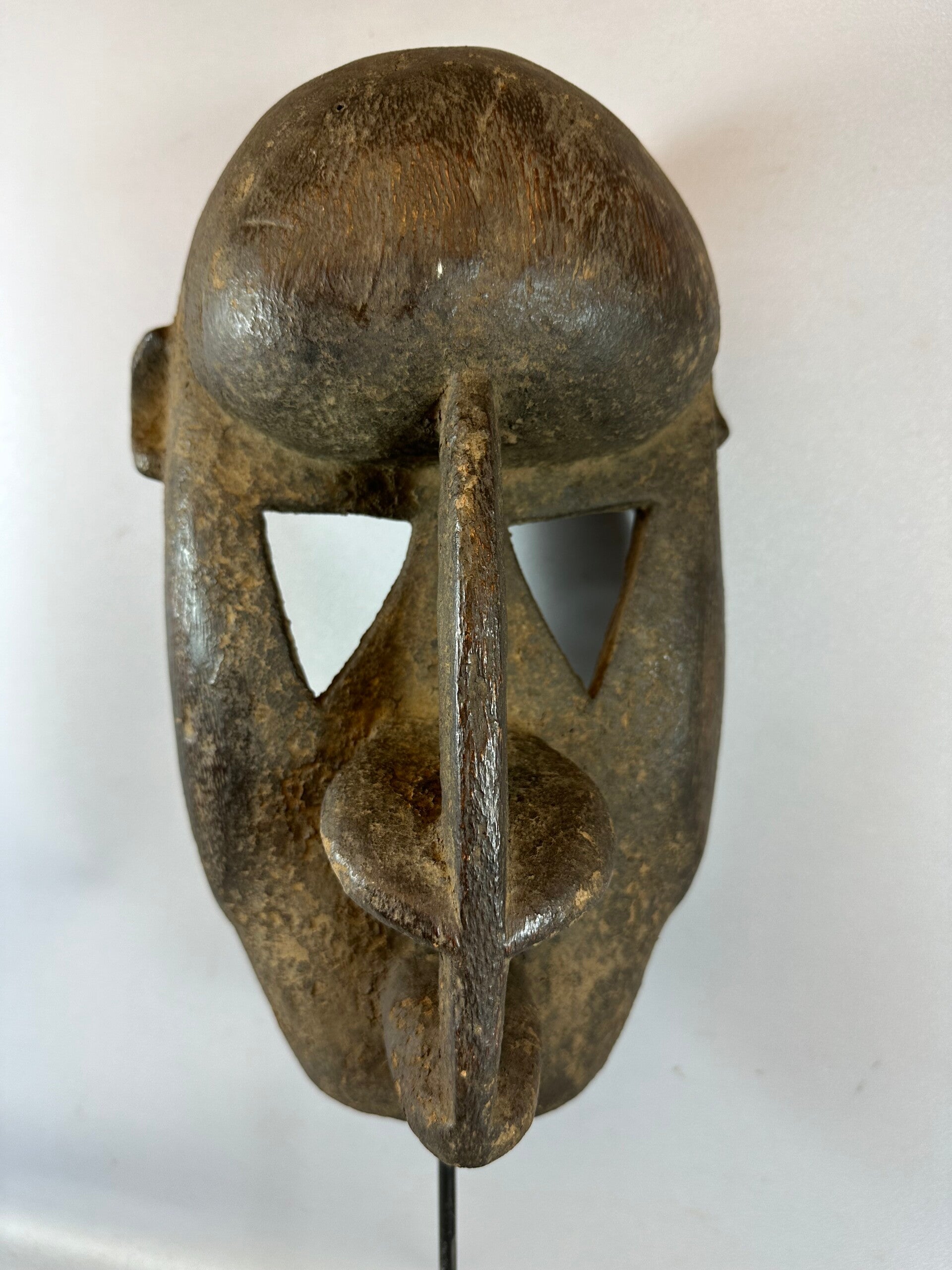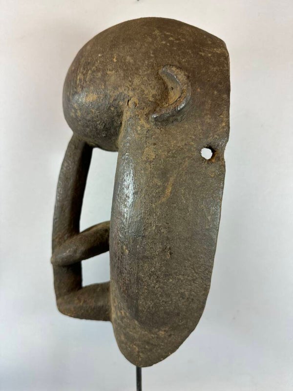 A Dogon mask depicting an abstracted human face showing traces of exposure to the elements on the surface .The Dogon are known for their elaborate funeral rituals with extensive use of masks. To say that they are one of the world's most fascinating cultures is an understatement. The more we learn, the more remarkable they seem. Their art is outstanding, as their masks and other objects reflect a purity of style rarely encountered in modern Africa. The oral tradition of the Dogon tells us that they originated on the west bank of the Niger River about 1000 years ago. They moved west at some point, into parts of what is now Mossi territory in Burkina Faso, but chose to return east due to pressure to assimilate into the Mossi Kingdom.