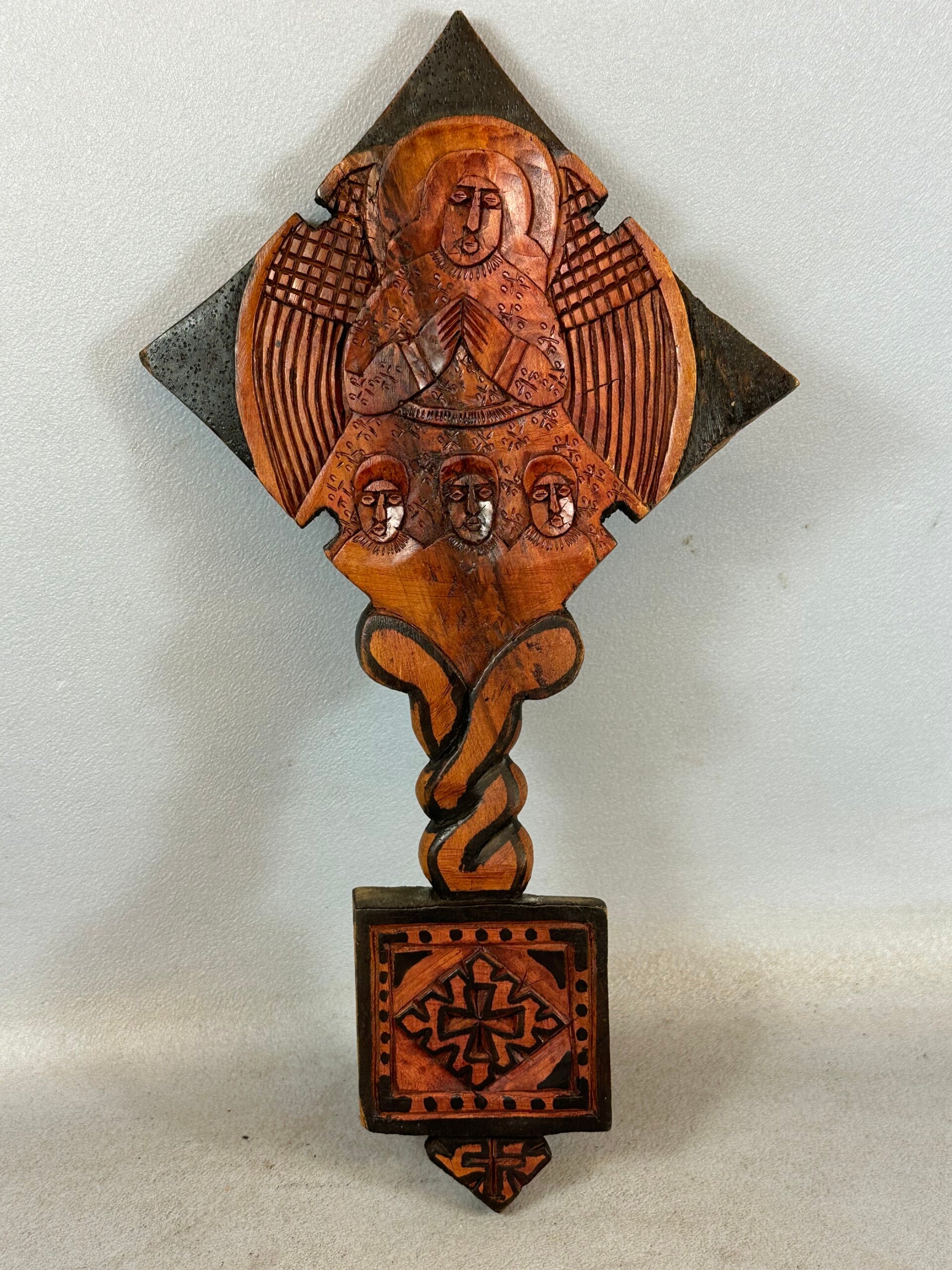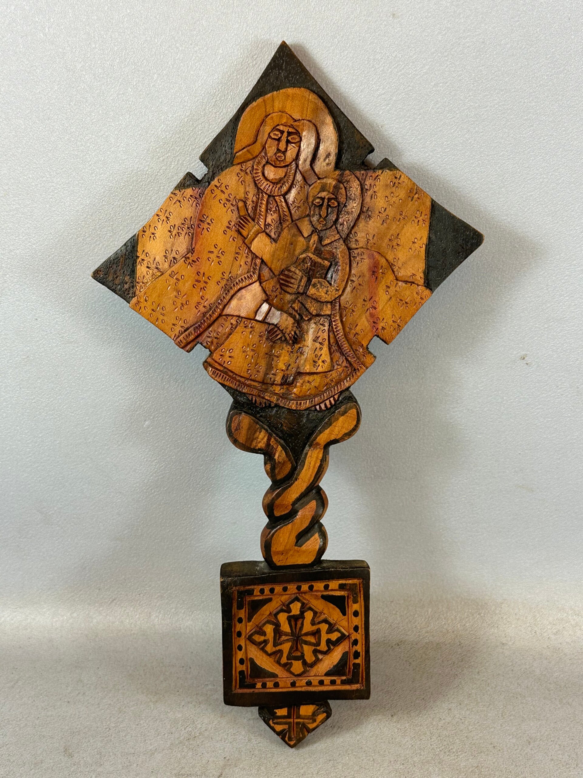 Old end. 20th century Ethiopia wooden Coptic Hand Cross from the orthodox coptic Church.