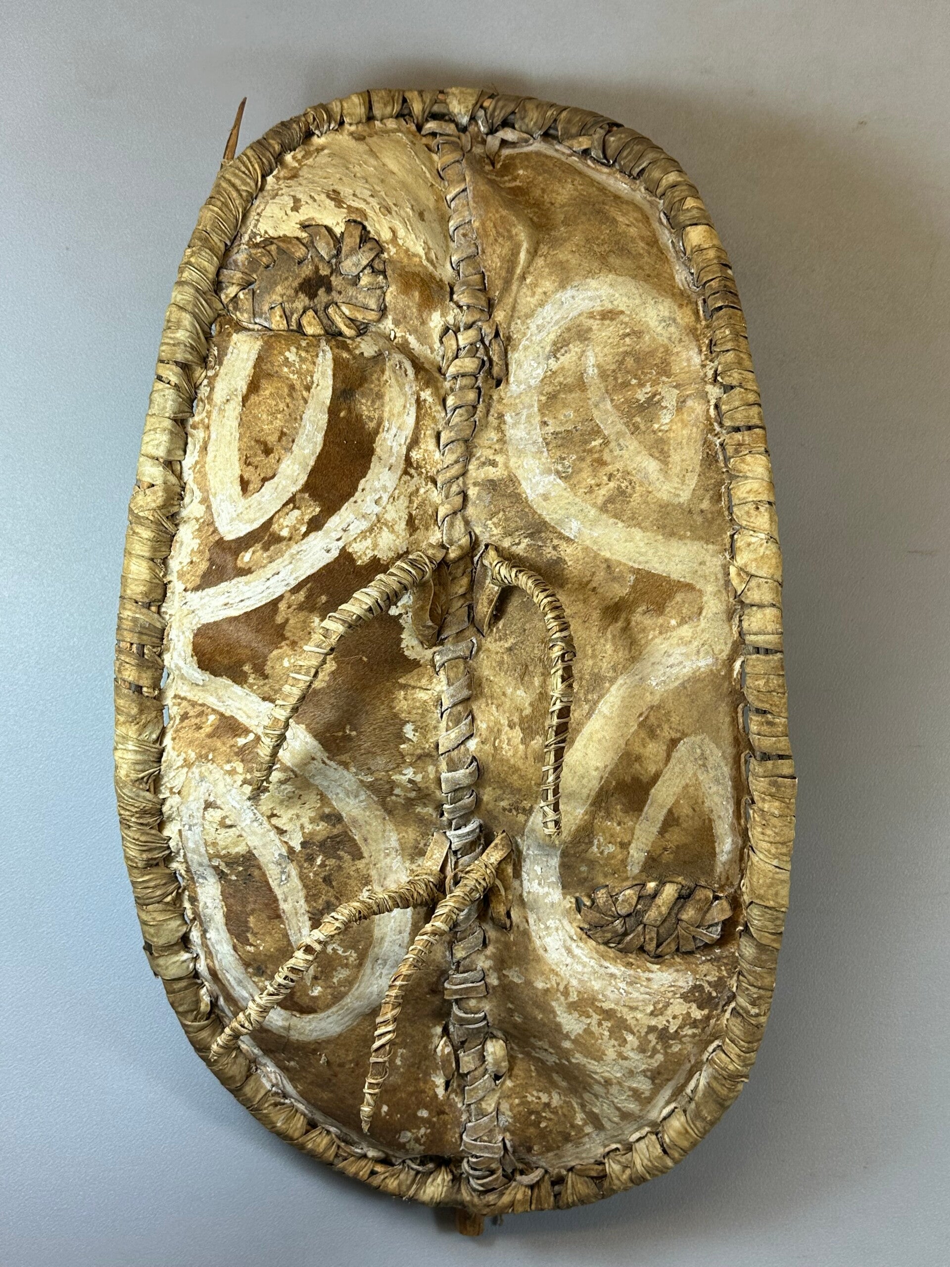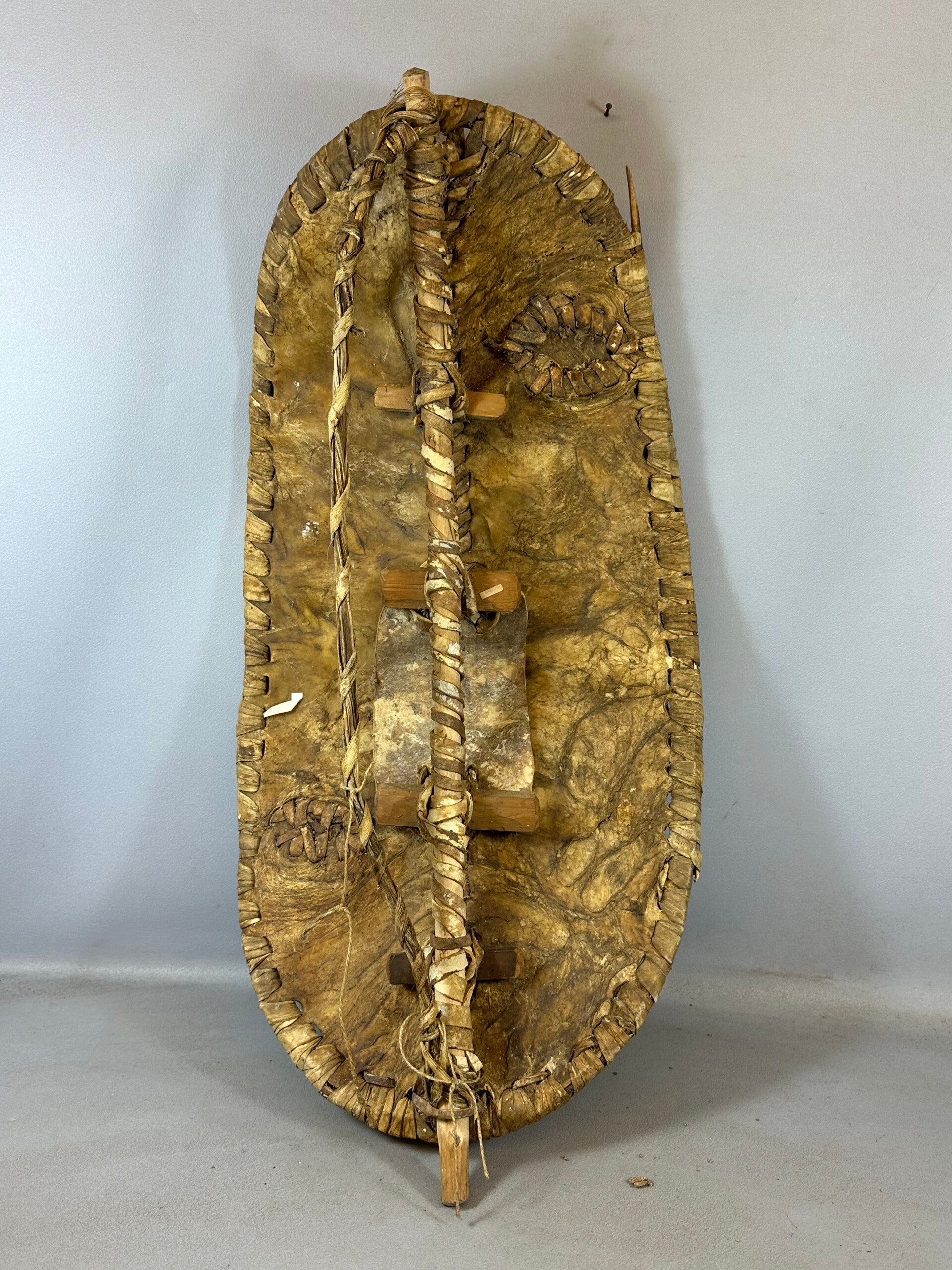 Dimensions: Length of the leather section of the shield is 65 cm and the width at the widest point is 33 cm.