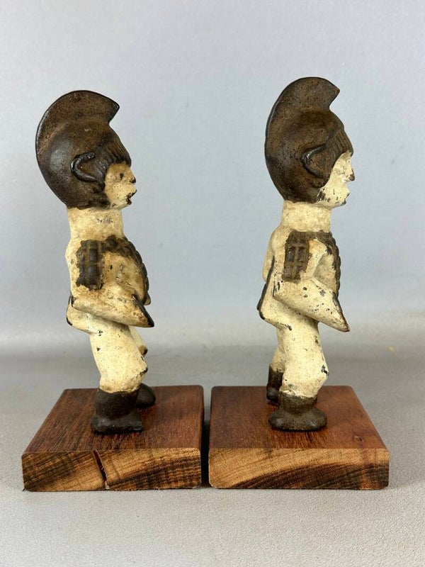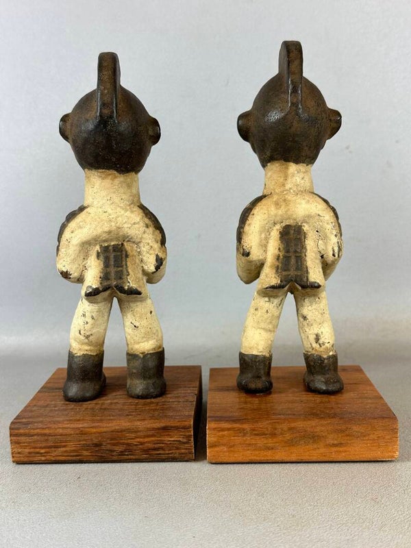 2 Old African IGBO sculpturen on stand from Nigeria.Hand carved from a single piece.