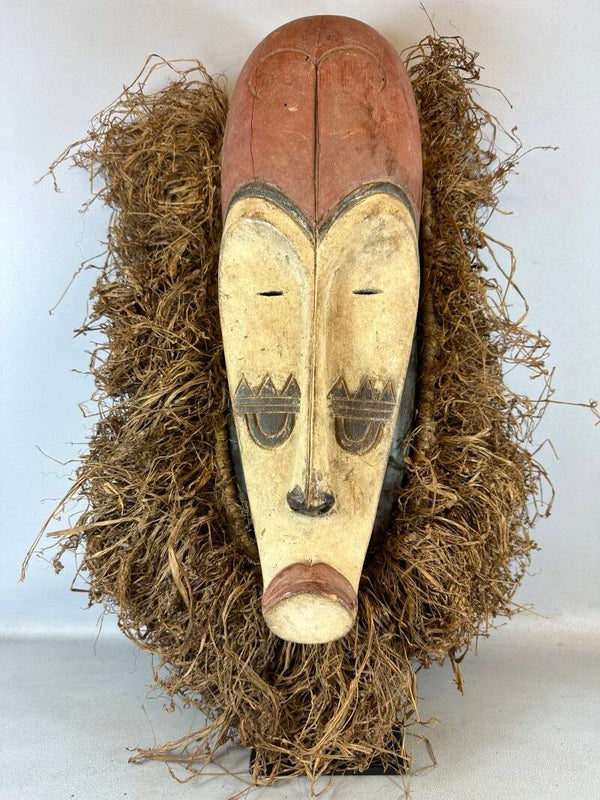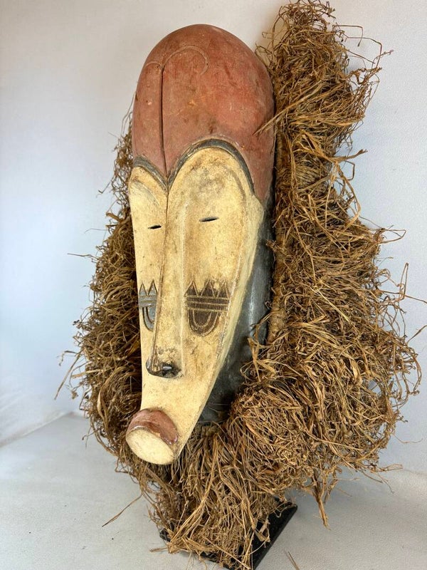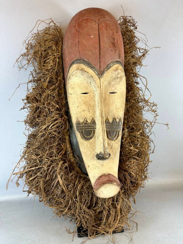 Very expressive African mask from the Fang with raffia beard, Gabon.