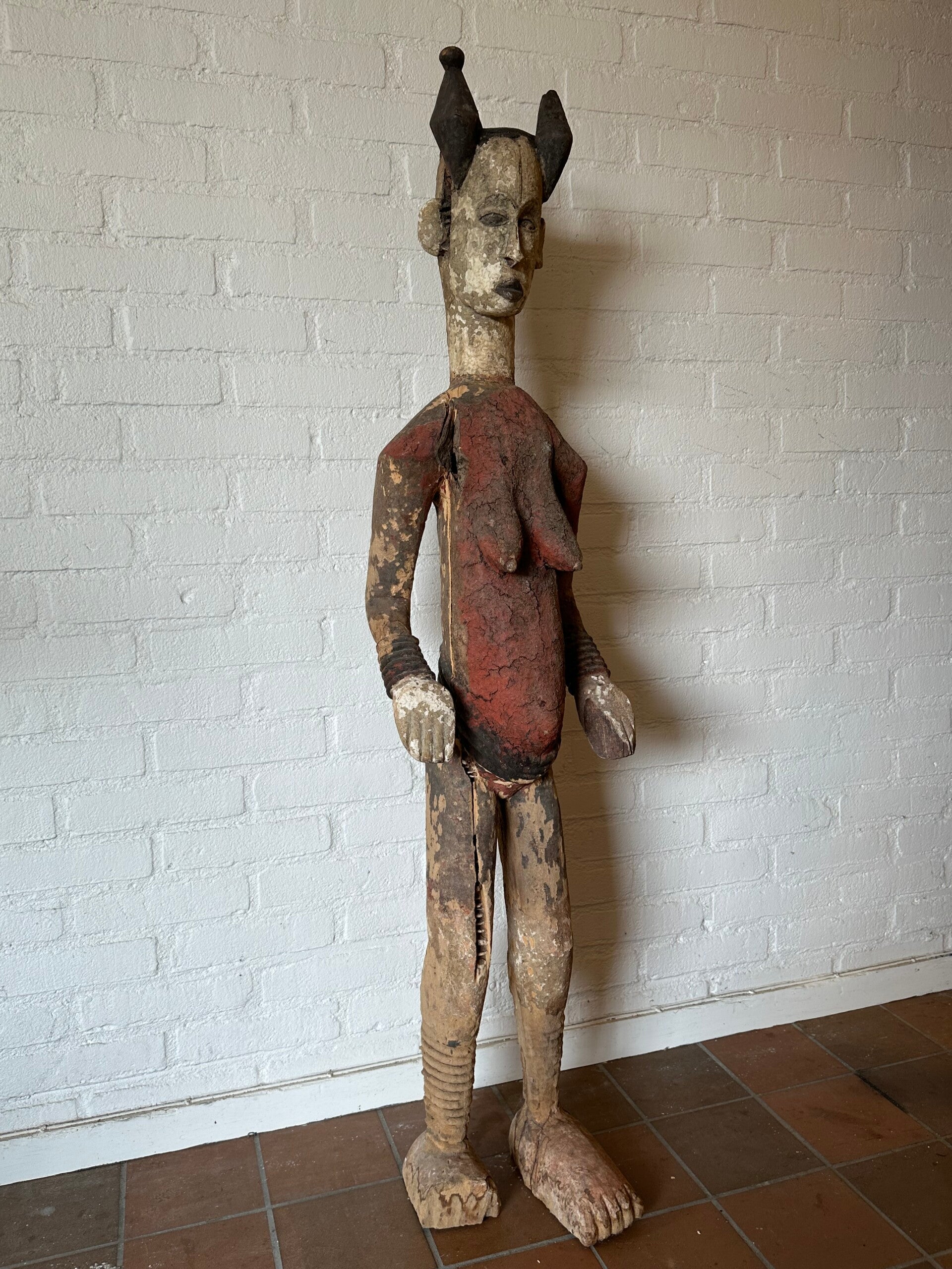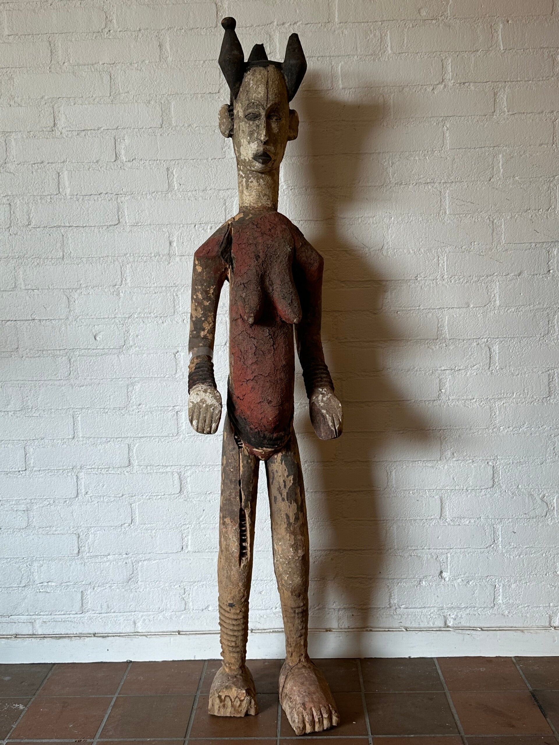 A Extremly Rare, old & very large - 130 cm - female Igbo Alusi figure with elaborate headdress from Nigeria.