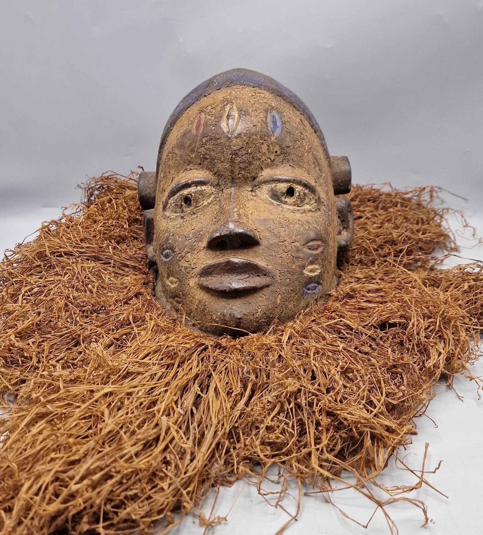 241005 - Old Yoruba Gelede Head- or Helm mask with Raffia - Nigeria.
