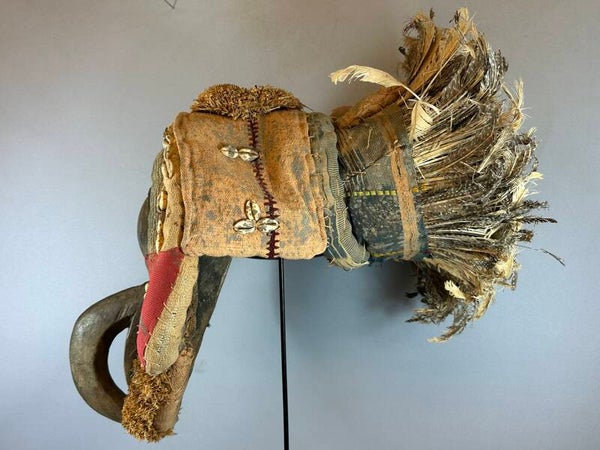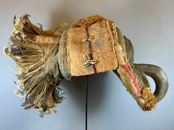 This type of mask belongs to the Koma family whose function is to detect or eliminate any form of witchcraft: the Koma Ba (female mask) attracts harmful beings, the Koma Su (male mask) destroys them. The hairstyle of this mask would suggest that it is feminine. When a Koma Ba mask has a crusty patina (which is not the case here) it is because it has received offerings.