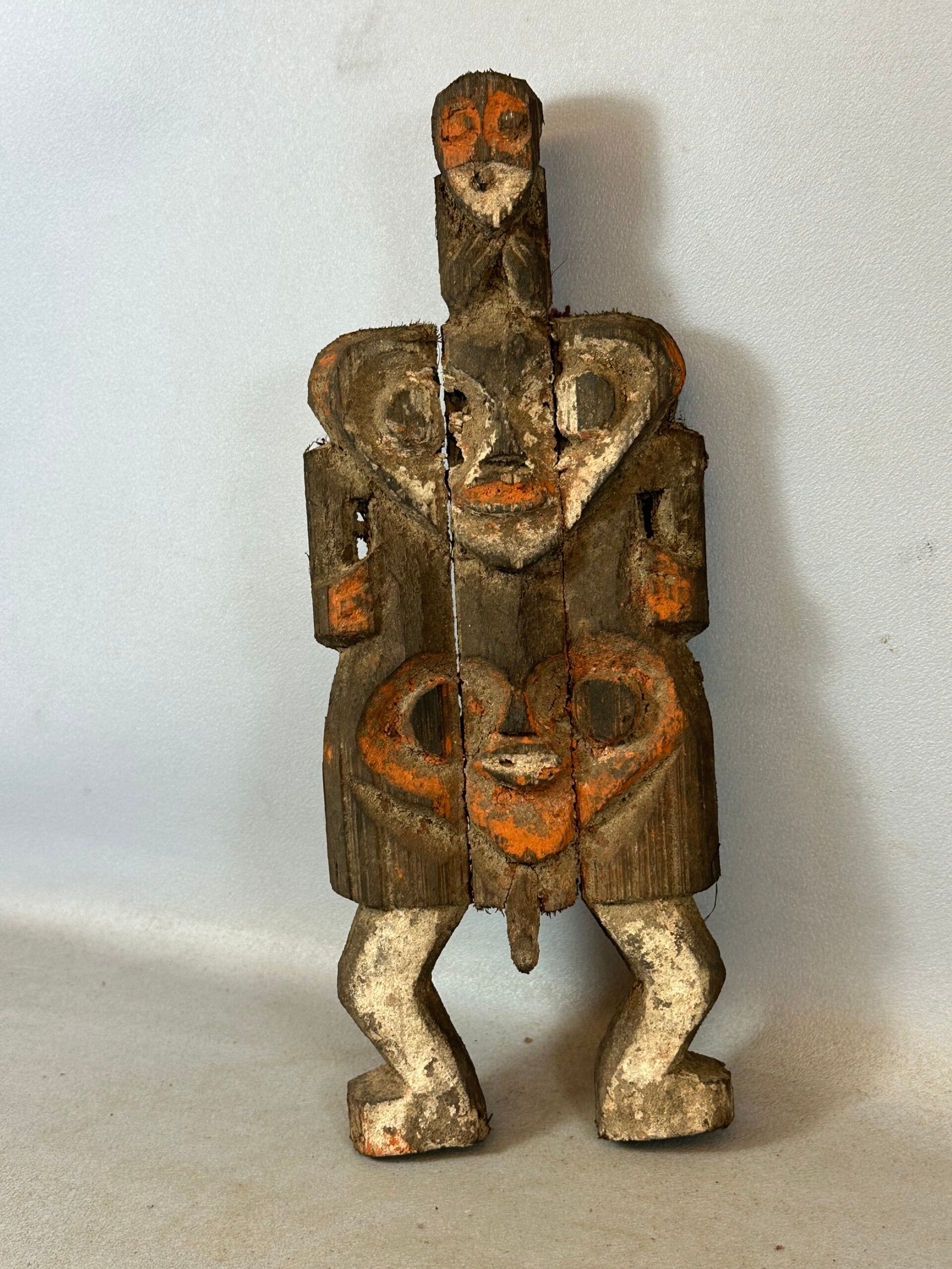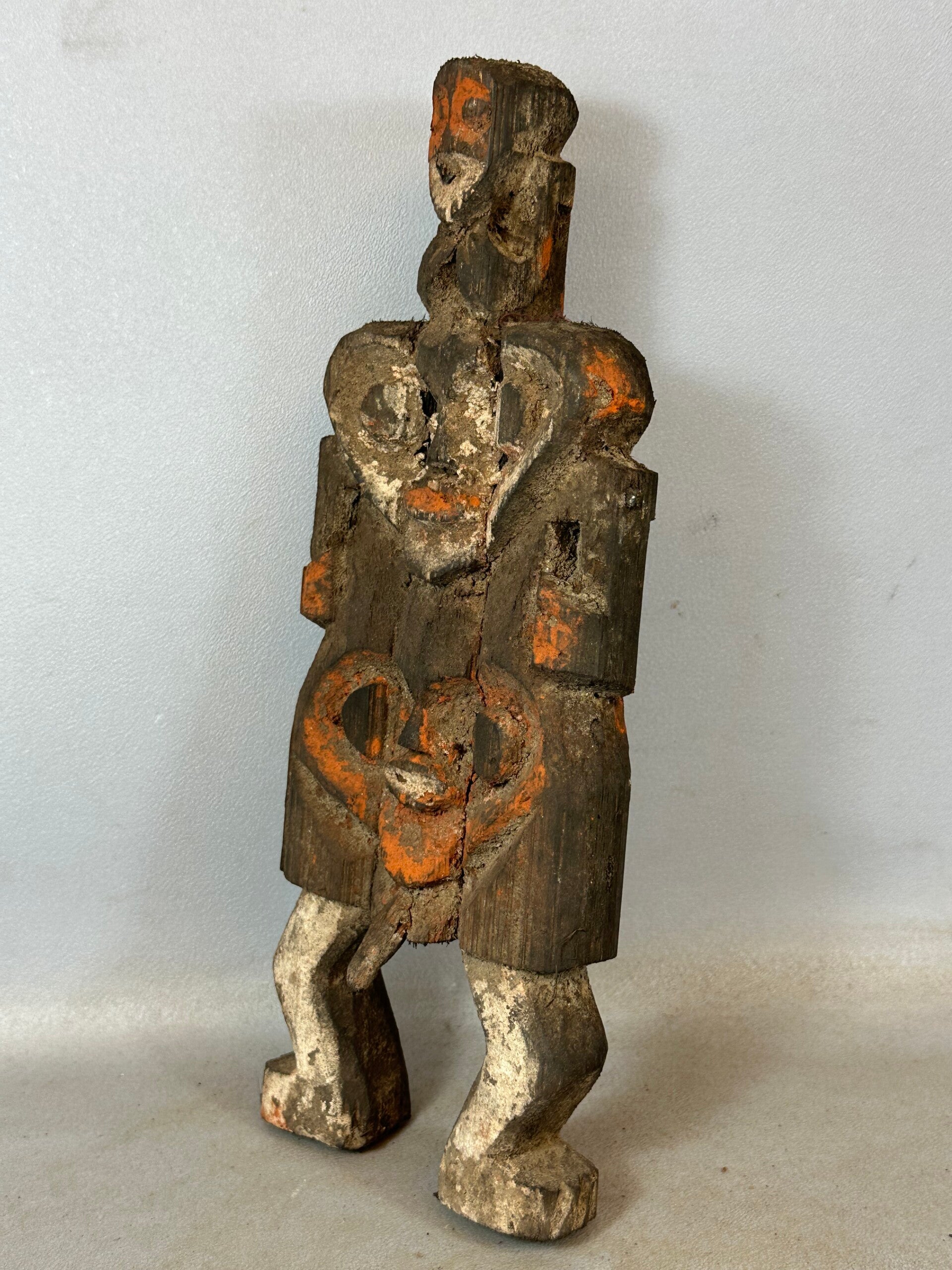 Hand carved from a single piece of wood, with color pigments.