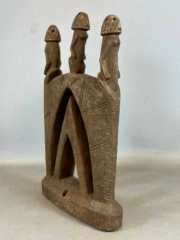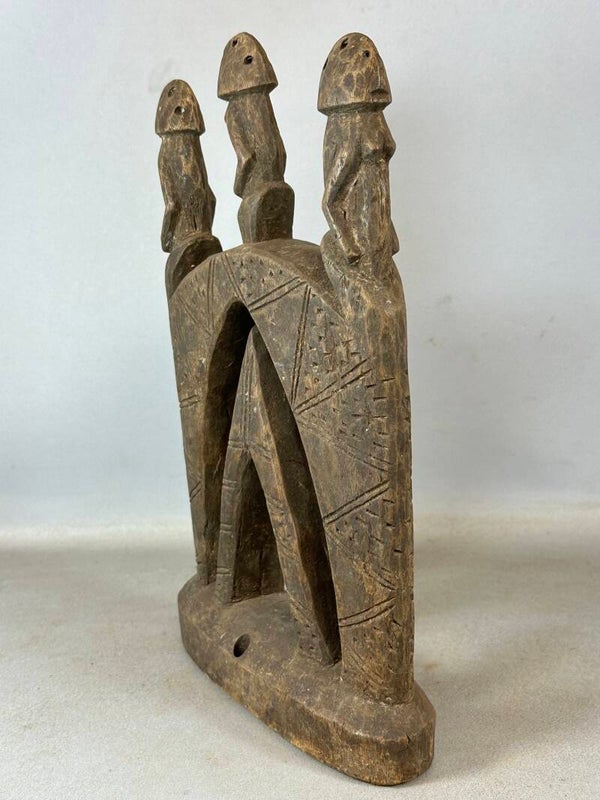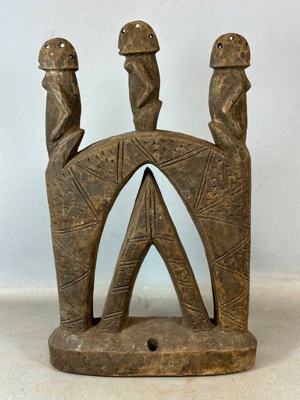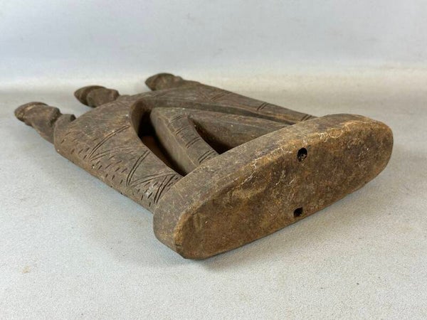 carved wooden headdresses in the form of antelopes, like these examples, refer to the mythic culture hero Ci Wara, a divine force conceived of as half man and half antelope. Bamana oral traditions credit Ci Wara with introducing to humanity agricultural methods and an understanding of earth, animals, and plants. In the nineteenth and early twentieth centuries, Ci Wara was invoked and honored by members of a men’s agricultural association, also called ci wara, in village-wide performances that celebrated the skills of successful farmers. These performances featured a pair of dancers wearing sculpted headdresses, one representing a male antelope and the other a female. They held sticks in their hands to paw the earth just as the mythic Ci Wara did when he first taught men to plant seeds.