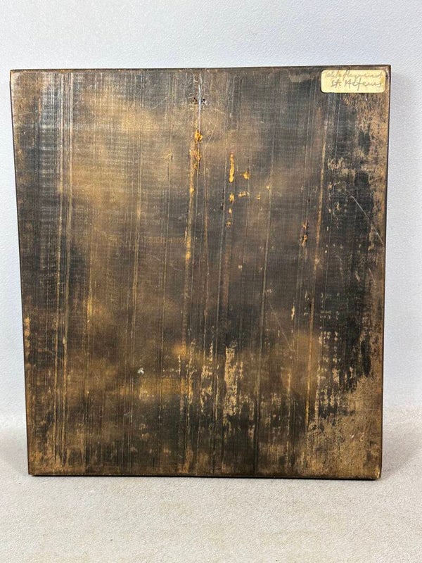 Attributed to the Artists Barbara and Worku Goshu, a married Icon Religious painting couple since the 1970's. Barbara is Polish, Goshu is Ethiopian, when Goshu went to Poland to study fine art he meet Barbara, when Goshu graduated, they moved to Ethiopia together when they work and own a gallery. Their works are all over the world. Barbara is the icon painter, who paints on wood, I suspect they are her works, from the old prices on the backs, I suspect they could date to the 1970's
