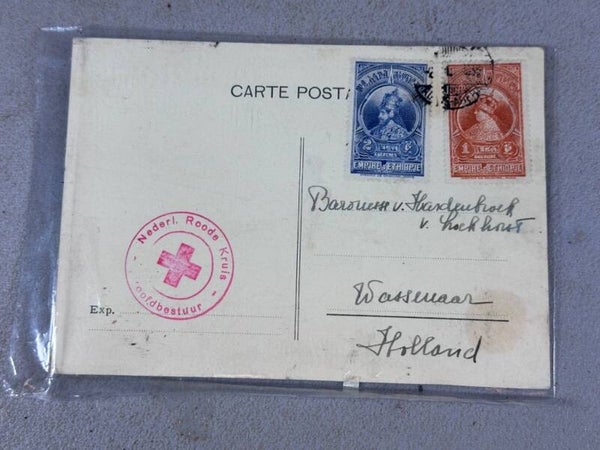 250114 - Rare Antique Vase Dutch Red Cross Ambulance to Ethiopia with postcard.