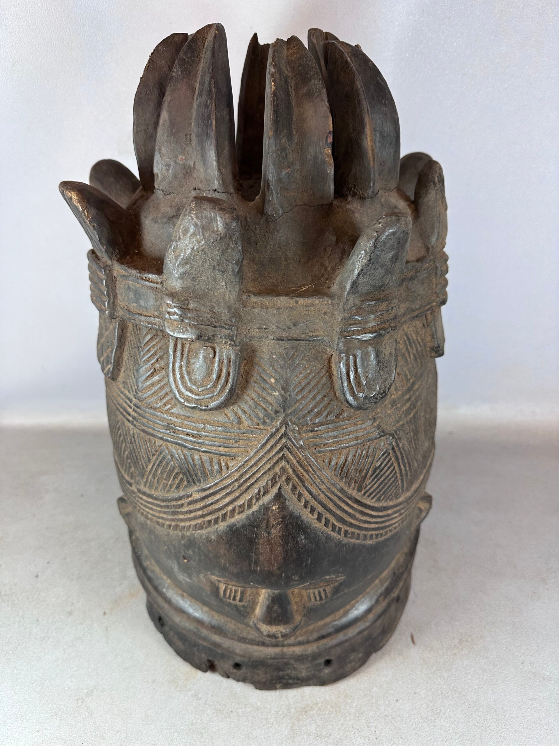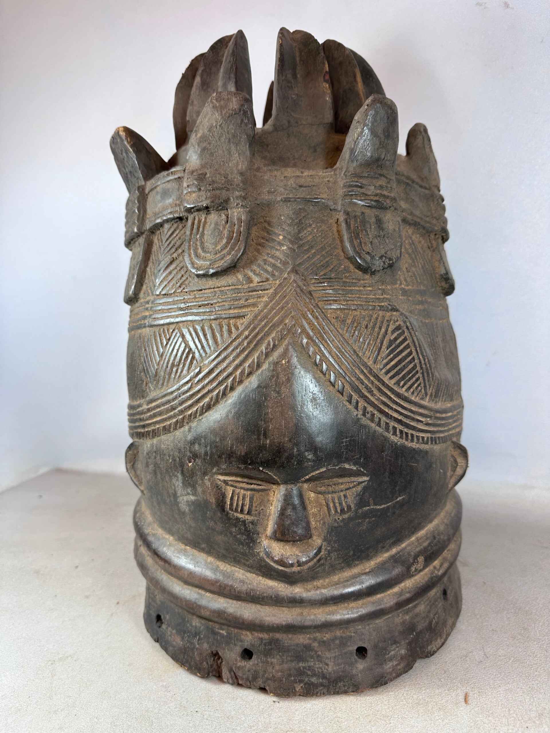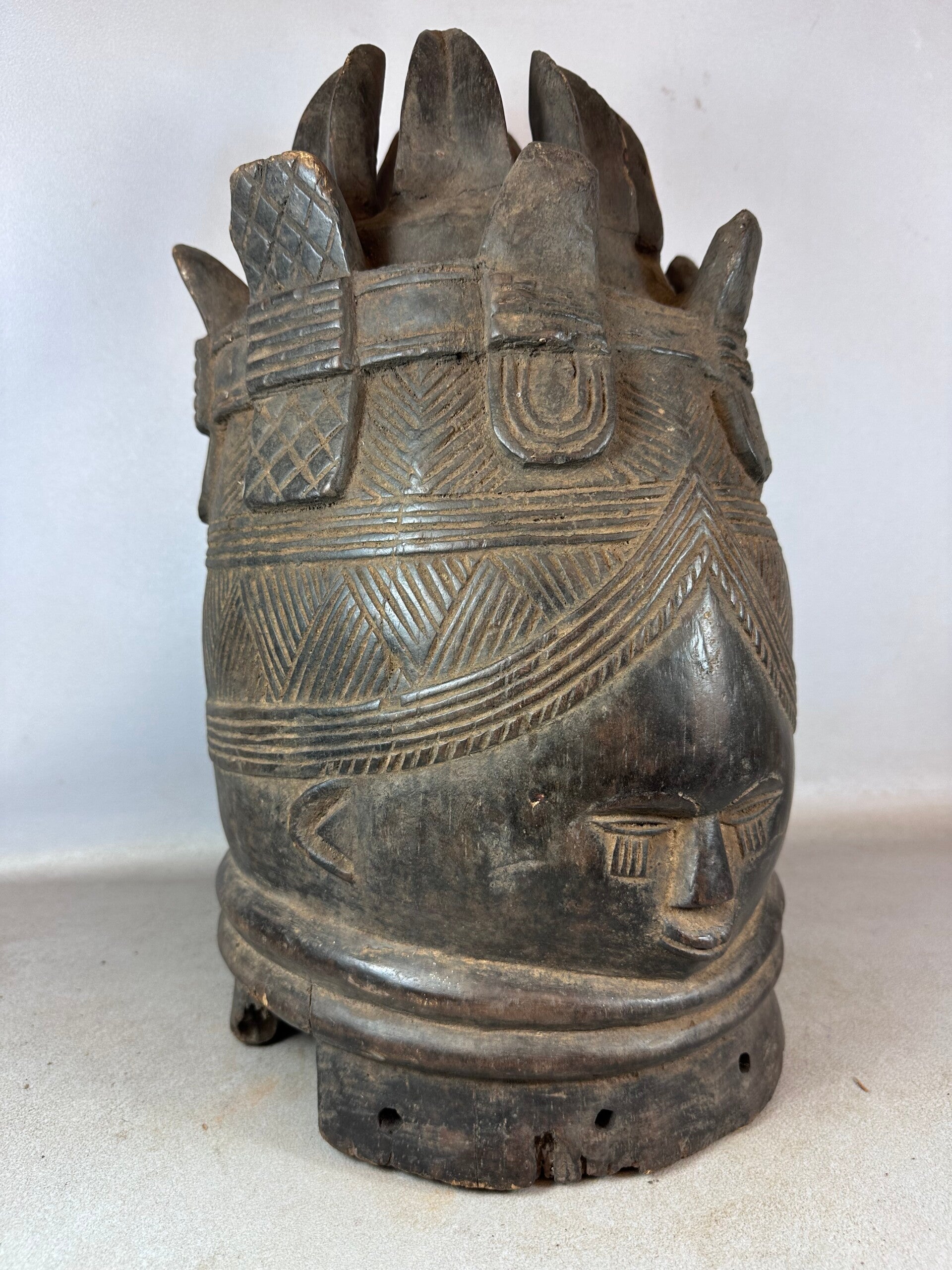 Old African Mende Sowei Sande Society Mask from Sierra Leone.