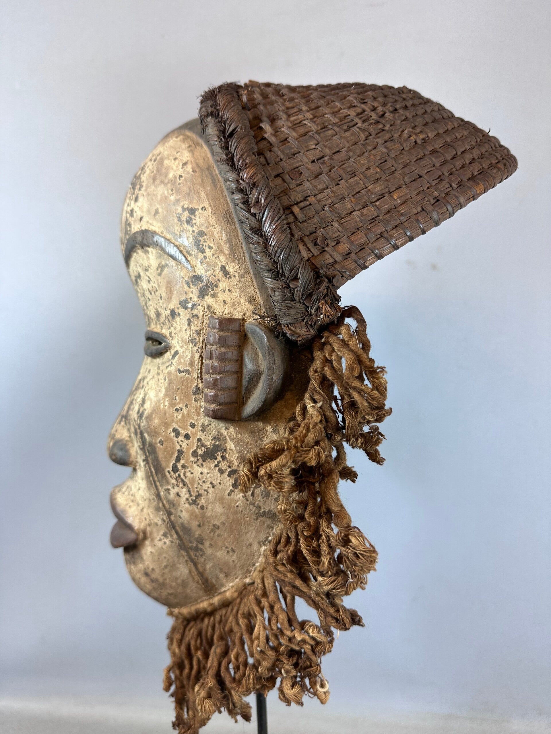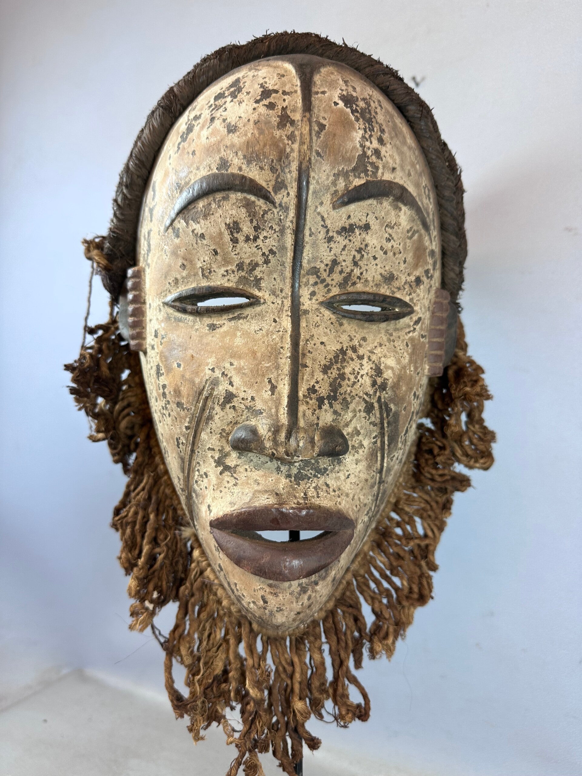 250120 - Old Traditional Authentic African IGBO Mask with beard & Cap - Nigeria.