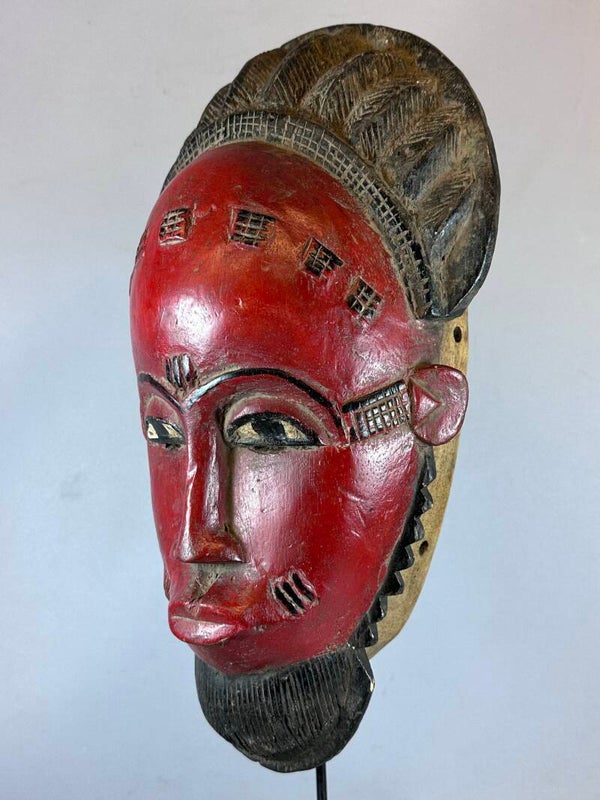 The Baule people is one of the largest ethnic group in the Côte d'Ivoire. They have played a central role in twentieth-century history of the country. They waged the longest war of resistance to French colonization of any West African people, and maintained their traditional objects and beliefs longer than many groups in such constant contact with European administrators, traders, and missionaries. The Baule belong to the Akan peoples who inhabit Ghana and Côte d'Ivoire. According to a legend, during the eighteenth century, the queen, Abla Poku, had to lead her people west to the shores of the Comoe, the land of Senufo. In order to cross the river, she sacrificed her own son. This sacrifice was the origin of the name Baule, for baouli means “the child has died.” Now about one million Baule occupy a part of the eastern Côte d'Ivoire between the Komoé and Bandama rivers that is both forest and savanna land. Baule society was characterized by extreme individualism, great tolerance, a deep aversion toward rigid political structures, and a lack of age classes, initiation, circumcision, priests, secret societies, or associations with hierarchical levels. Each village was independent from the others and made its own decisions under the presiding presence of a council of elders. Everyone participated in discussions, including slaves. It was an egalitarian society. The Baule compact villages are divided into wards, or quarters, and subdivided into family compounds of rectangular dwellings arranged around a courtyard; the compounds are usually aligned on either side of the main village street.