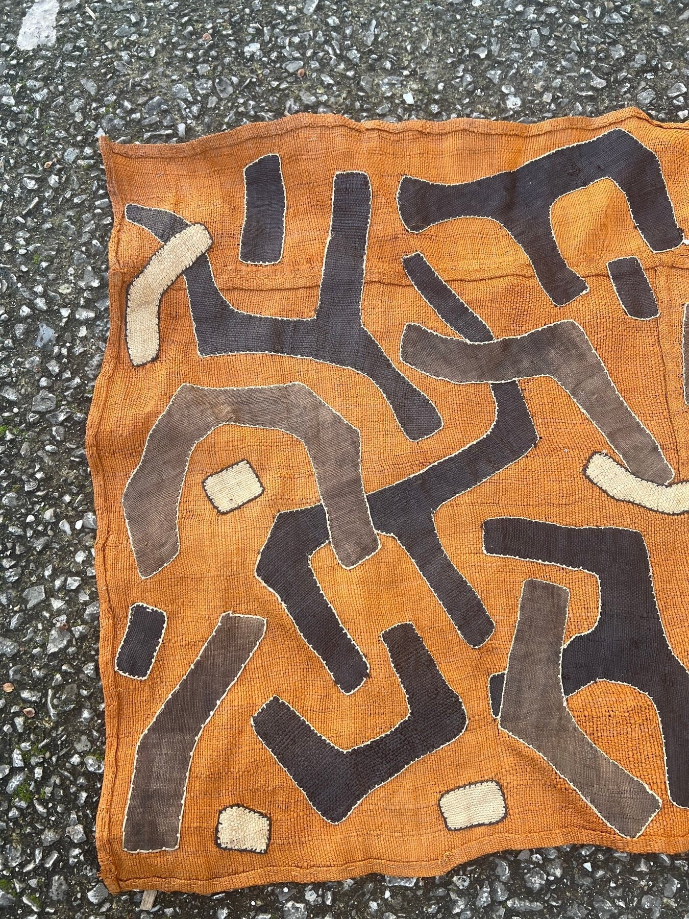 Produced in Zaire by the Shoowa, Bashoowa, Kuba subgroup, these fabrics are true primitive art paintings and consist of a base of raffia textile on which the threads are cut flat, creating a velvety effect accentuated by the contrasts of tone. The geometric patterns formed represent the ethnic body scarifications or the decorations of the sculptures. These refined fabrics were intended to be used at the royal court as seats or covers, to enhance its prestige. In many cases, they took on the value of money, or they also followed their owners to the grave by covering the body of the deceased.