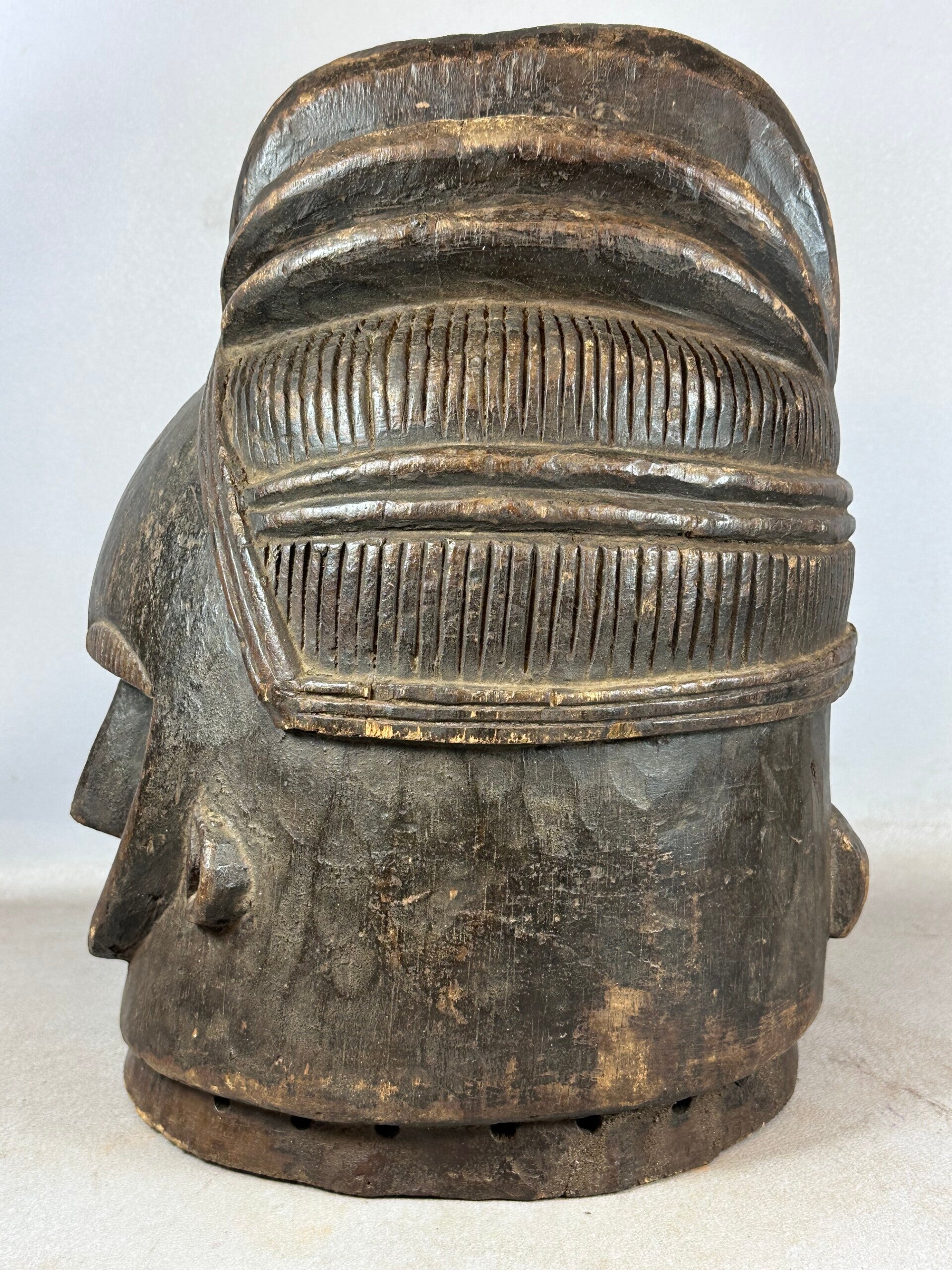 Old African Mende Sowei Sande Society Mask from Sierra Leone.