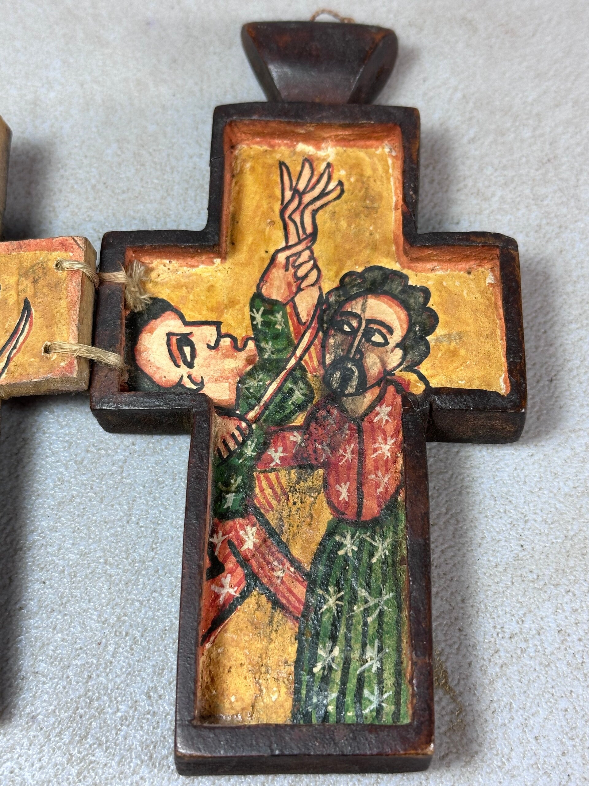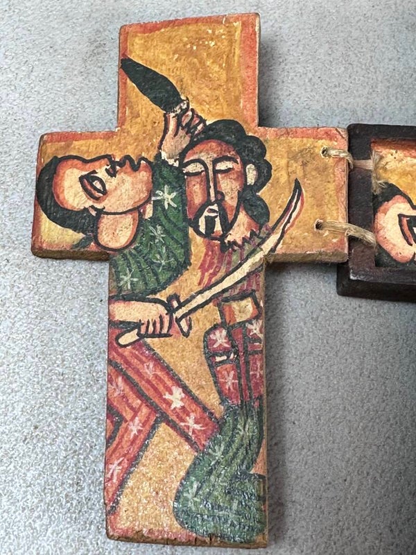 250138 - Antique handpainted coptic wooden cross icon - Ethiopia.
