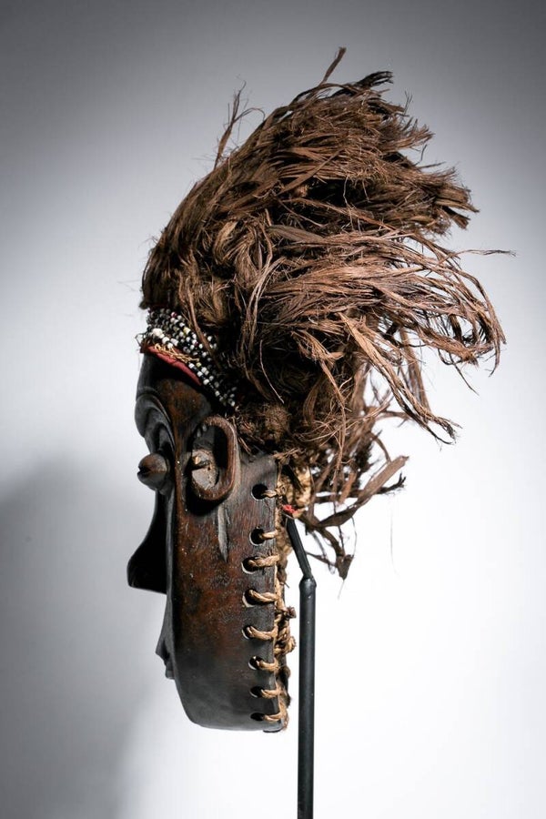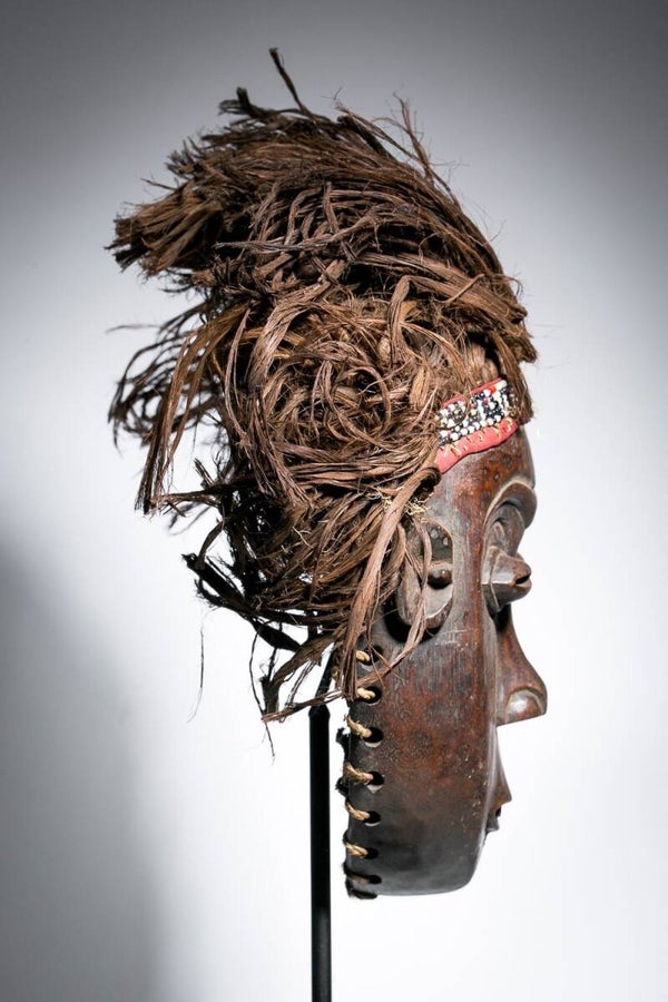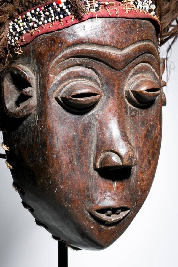 Rare African Mwana Pwo Luena mask from the Chokwe, from Congo.Mwana Pwo reflects all the positive qualities of an ideal woman who can serve as a Chokwe role model.