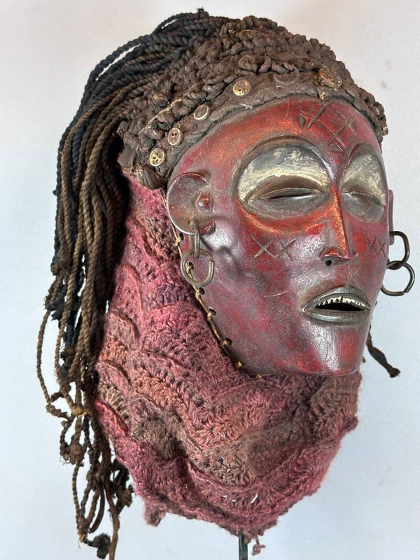 Rare African Mwana Pwo Luena mask from the Chokwe, from Congo.