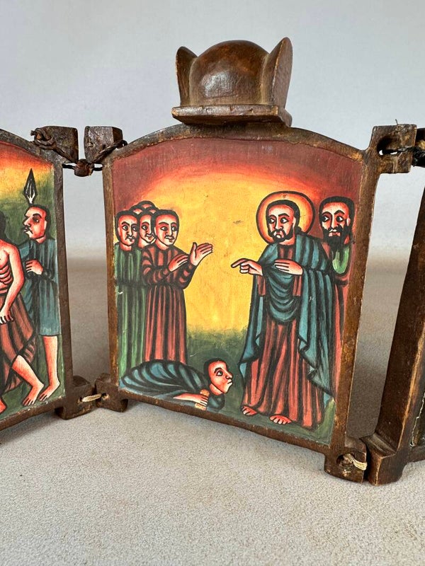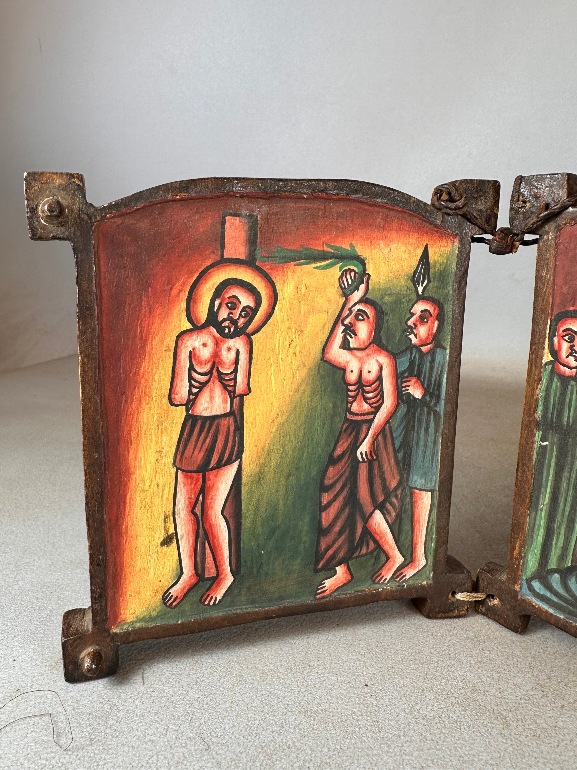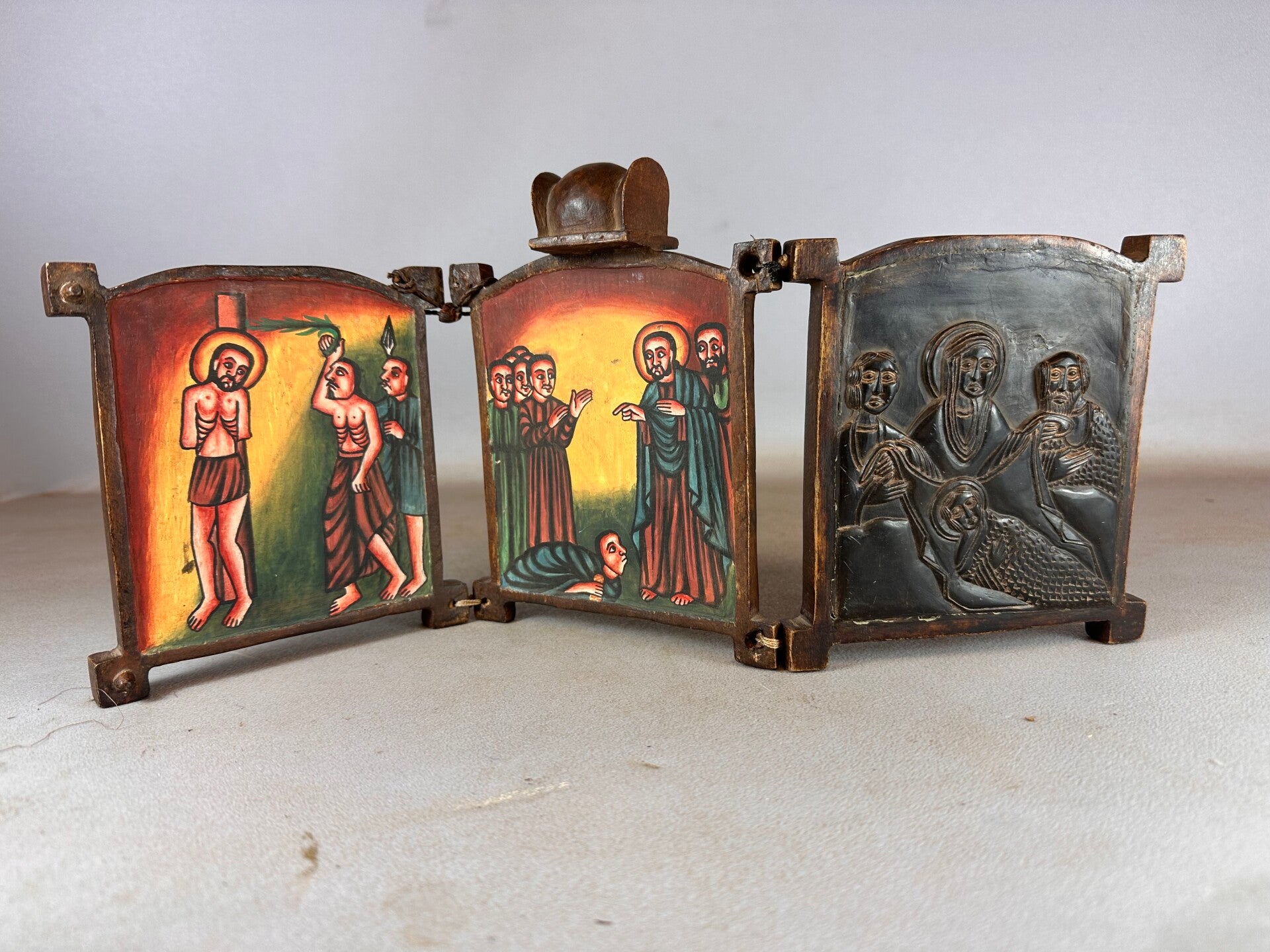 This icon comes from the Coptic Church and is handpainted end 19th century with 4 handpainted icons.