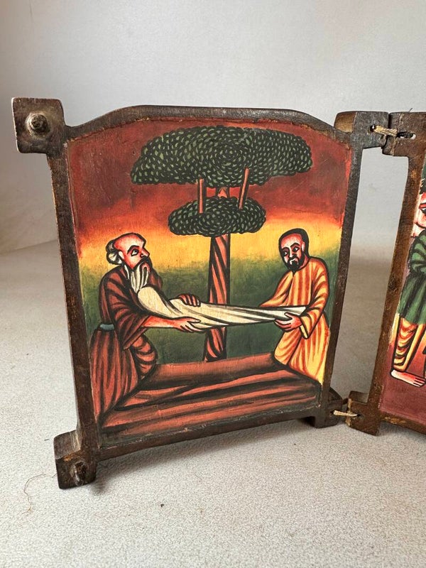 250213 - Antique Rare Ethiopian coptic wooden icon - 4 handpaintings - Ethiopia.