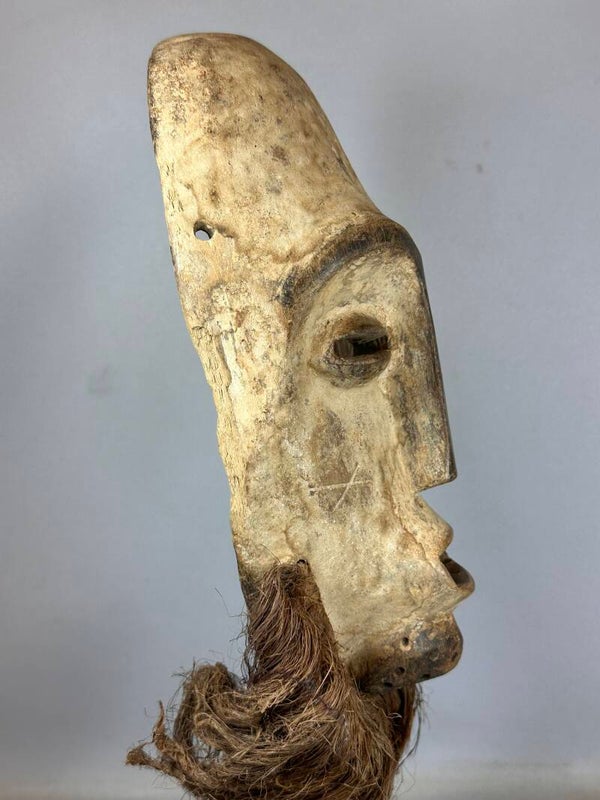 Some artwork can only be seen, handled or owned by the highest grades of the society. The objects are typically small and simple in form, and have a striking patina that derives from being handled or worn on the body. Iv. objects usually have russet or yellow patinas. The masks are fairly standardized, although the most important masks with special ritual use or symbolic meaning may have distinctive design. A typical mask will have a concave heart-shaped face. The forehead protrudes slightly, the nose is narrow, eyes are slits and the mouth is slightly open. Every time a mask is used it is rubbed with white clay, over time acquiring a white patina.