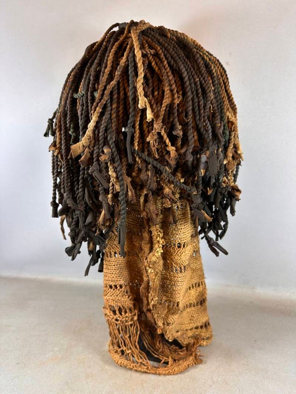 The Chokwe are members of a large cultural cluster that now lives in central Angola, parts of the Democratic Republic of Congo and Zambia. This cluster consists of a number of different but related peoples, the most prominent of which are the Chokwe, but the cluster also includes the Lunda, Ovimbundu, Lwena, Luvala, Mbwela and Imbangala. As a result of the complex interaction between people, the region has shared stylistic elements and figurative forms based on shared mythologies and ritual practices. The current mask called Mwana pwo depicts a beautiful young woman and represents the female ancestor. Mwana pwo mask appears at the initiation and circumcision ceremonies of young boys (Mukanda). Mwana Pwo also dances at the induction of a new chief, at funerals and fertility rituals, and during public entertainment. During the performance, Mwana Pwo is always accompanied by male character masks such as Cihongo or Cikunza. Mwana Pwo's dancer attracts a very large audience, especially women. The grace and elegant gestures of the pwo mask teach Chokwe women to act gracefully. Mwana Pwo reflects all the positive qualities of an ideal woman who can serve as a Chokwe role model.