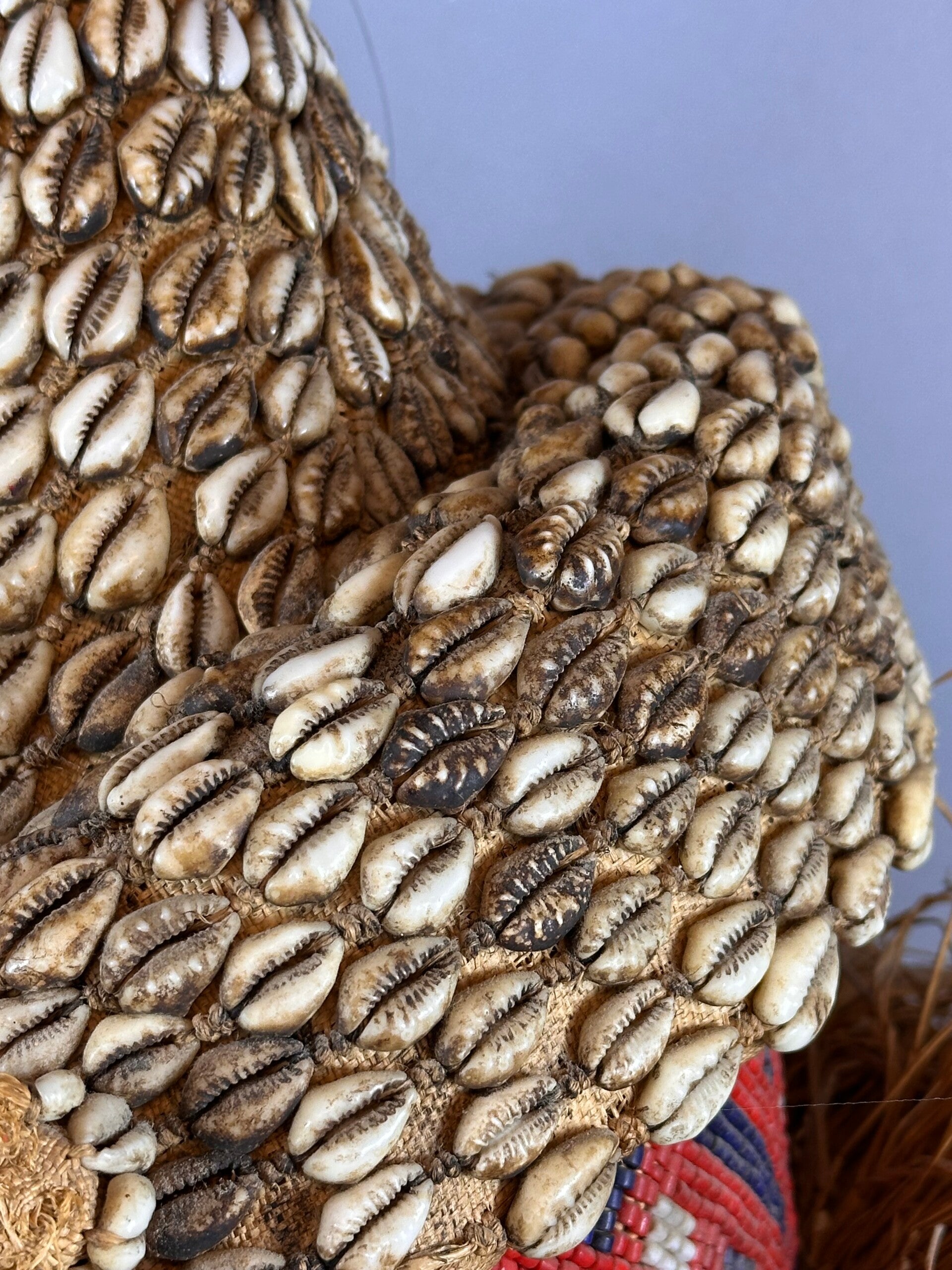 In the southern Kuba region, the elephant mask took center stage in funeral dances involving aristocratic members, typically donned by the dancer portraying the departed individual. The opulent arrangement of beads and shells served to emphasize their elevated social status. This colorful trio of characters comprises the recognized pantheon of royal helmet masks, which are eagerly sought after by collectors and museums.
