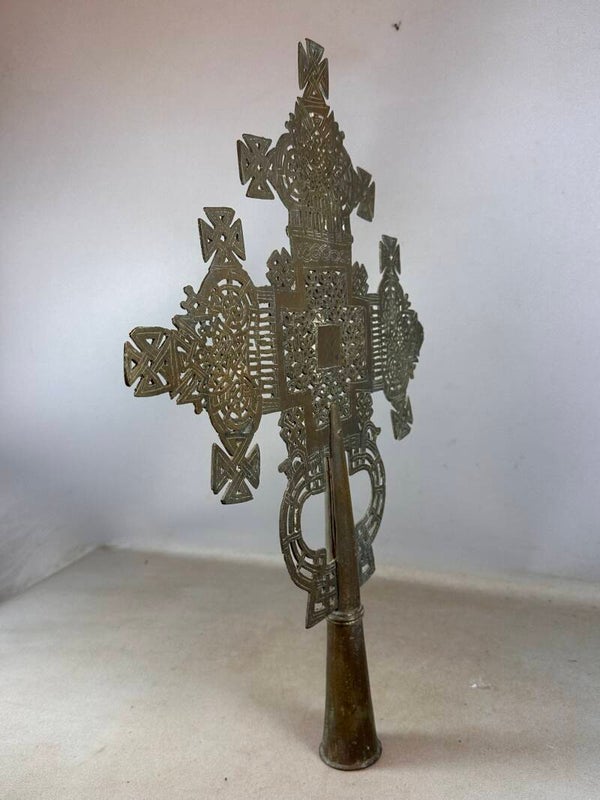 250311 - Old African Large Coptic Handcrafted Processional Cross - Ethiopia.
