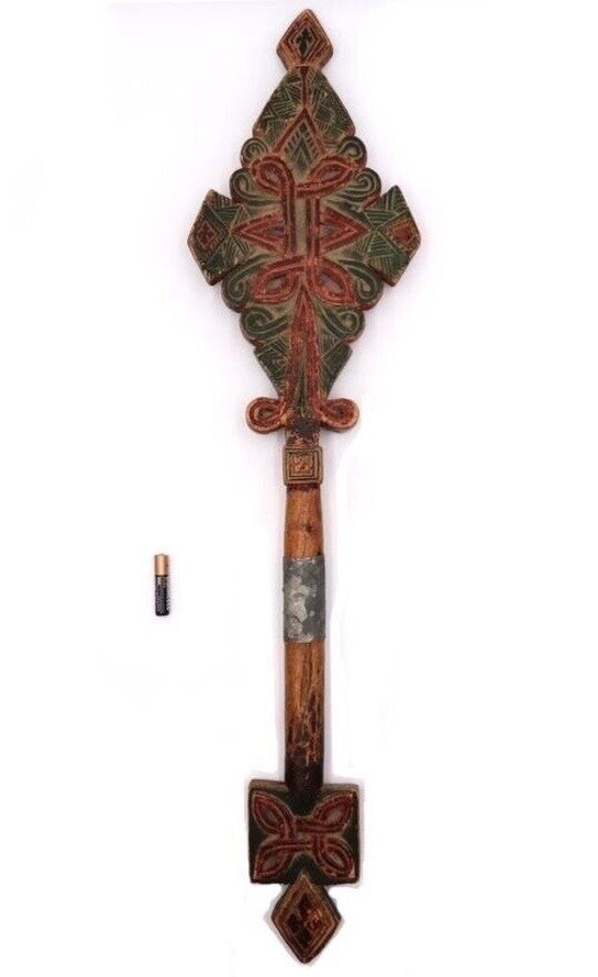 Extremely Rare Large Olive wood 18th century Ethiopian Coptic Hand Cross from the orthodox coptic Church.